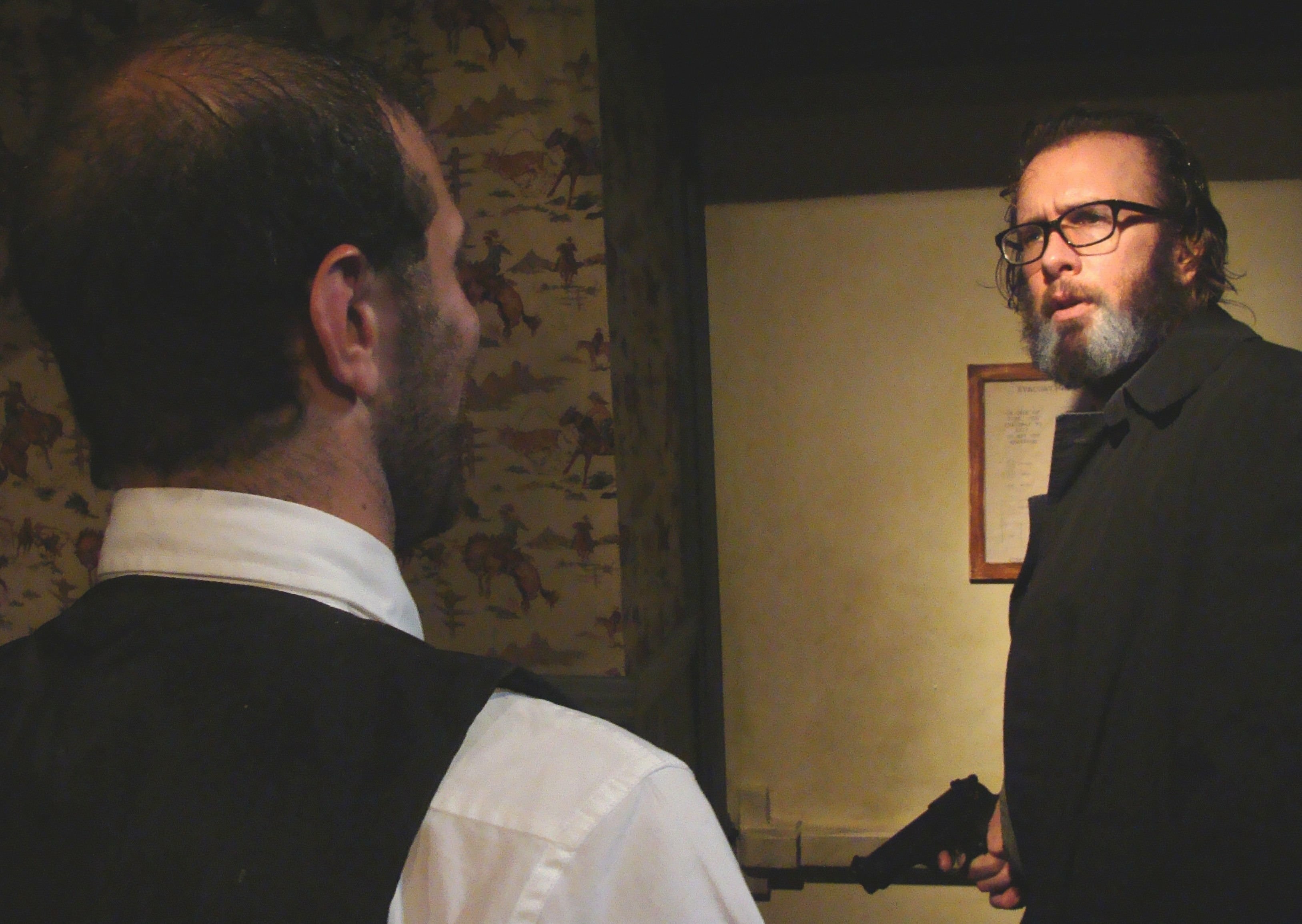 Add the wacky hotel attendant, Mervyn (Eric Burgher in a terrific performance as he delivers a moving monologue) who has a fantasy wish to be a hero to someone somewhere and we have the ingredients of black humor in preposterous situations. Life and death struggles are interrupted by call from Carmichael’s mother in Spokane as candles and gasoline are ready to erupt. This wacky tale is filled with strange humor and impossible circumstances that stretch credulity. But the mysterious and unpredictability of McDonagh’s tale keeps us on the edge of our seats. You’ll never guess what will happen next and I’ll not give away anymore details so as not to spoil things since you’ll want to see this strange but engaging dark show. Kudos to Profiles Theatre for snatching the Midwest Premiere of McDonagh’s latest work.