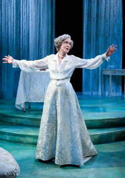 The costumes (by Rachel Anne Healy) on Kevin Depinet’s original set with Jesse Klugr’s lighting made a sensual atmosphere to a long Swedish summer night in the country. Sondheim’s eloquent score contains songs like “Remember,” “The Glamorous Life,” “A Weekend in the Country” and the signature tune “Send in the Clowns.” Jonathan Weir, Shannon Cochran, Brandon Daahlquist, Brianna Borger (as Petra) easily nailed their songs with aplomb and heart. I especially enjoyed the honest performance by Deanna Dunagan as the wise old grandmother. Brianna Borger, as Petra, delivers “The Miller’s Son” in a movingly emotional tone.