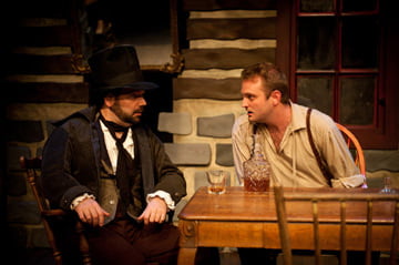 Written in 1942 but not produced until 1958, Eugene O’ Neill’s A Touch of the Poet and it’s sequel, More Stately Mansions were intended to be part of a nine-play cycle entitled A Tale of Possessors Self-Dispossessed. Only those two plays were every written bu O’ Neill. The Touch is a saga of the Major Cornelius (“Con”) Melody (Frank Nall) and his family now living in outside Boston in 1828.