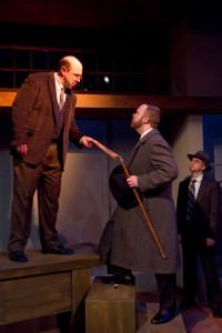 Initially the liberal town newspaper editor, Hovstad (Brian Polharczyk) was on the doctors side along with his publisher Aslaksen (James Eldrenkamp). These liberals back the public’s right to know and they oppose the current conservative power structure so anything that can embarrass the mayor is their meat. They assure the doctor that they’ll print the report that verifies his findings about the poisoned water.