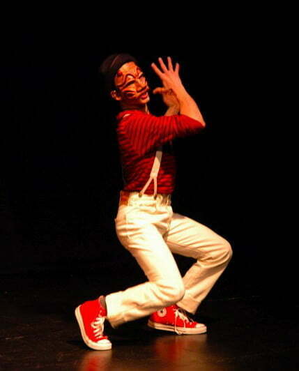 Omen Sade Filament Theatre Ensemble ChicagoAnd just because an art form is old doesn’t mean that its modern representations must feel archaic.  Omen Sade understands this in his very marrow.  Arlecchino’s Odyssey may use the stock character of Arlecchino, a harlequin, but it tells a modern story of a modern journey, and includes references to great philosophical figures of the 20th century, such as Sartre, Freud, and Kanye West.  There is also more than a little Chaplin in his character.  And true to the form, the audience plays a role in the piece: just as Shakespeare’s actors did in the Globe, Sade plays with his audience, and the audience, in its own way, shapes the show.  Sometimes in a big way: last night was a little blue, but Sade and fellow Filament member Mary Spearen have also developed a child-safe version, which they can readily perform for younger audiences.