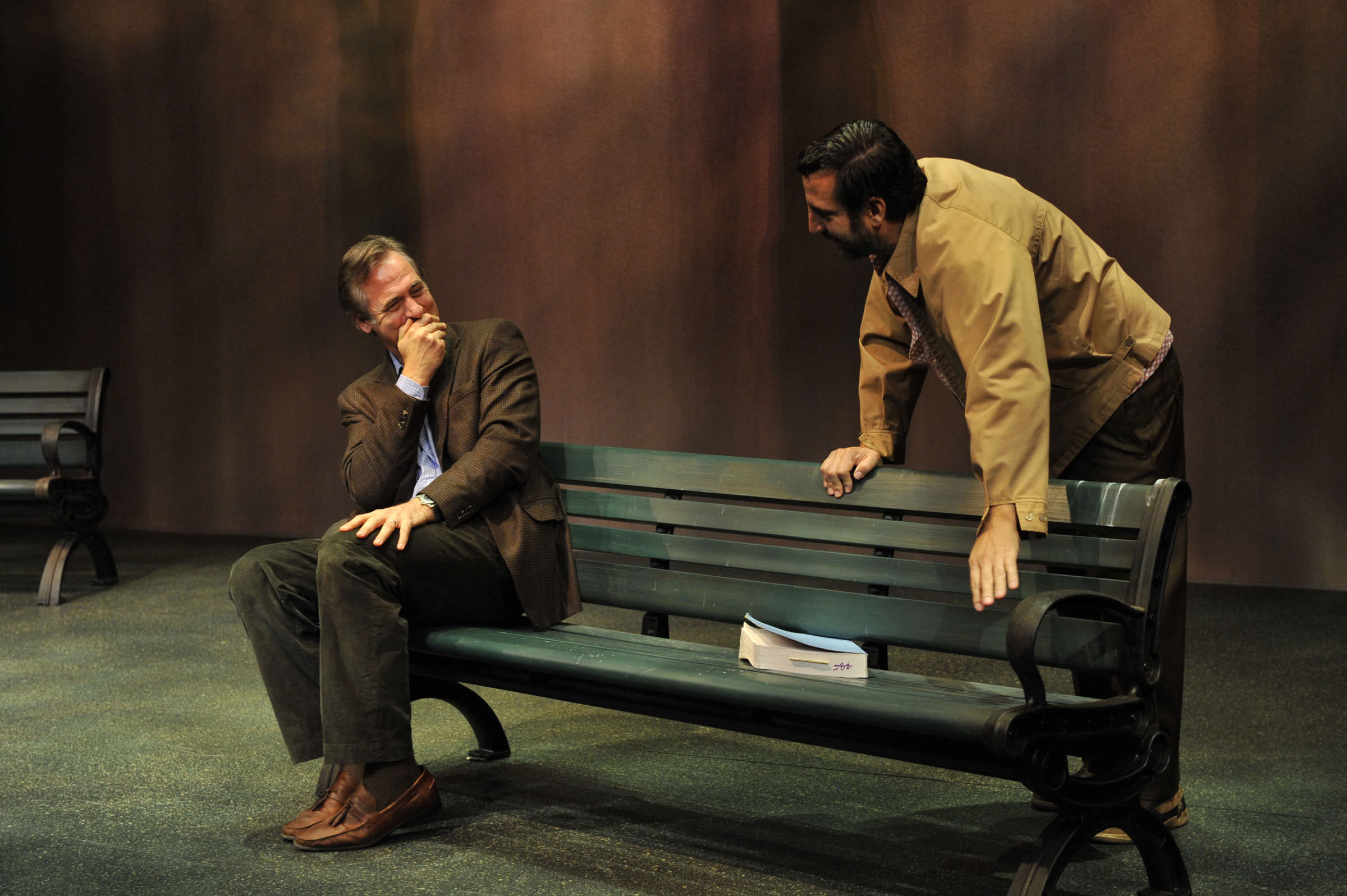 Homelife finds Albee trying to establishing Peter’s family life. It features Tom Amandes as the relaxed textbook publisher, Peter, most content with his upper middle class life. Annabel Armour plays Ann, his conniving wife who is slowly dying due to boring compromises the couple has made over the years. She makes Peter talk about extremely personal matters that he is clearly uncomfortable with such as his belief that his circumcision may be becoming undone. Ann chides Peter’s penchant to play it safe sexually; she wants him to rekindle the ‘animal within.’ Ann needs some upheaval to stimulate her desires; Peter rejects her approach. As Peter becomes uncomfortable with Ann’s blunt talk that defines the difference between ‘love making’ and fucking, Peter decides to take a walk to the park. Me and much of the audience found this over written act tedious and unnecessary. In order to make the second act work (as it has for more that 50 years), we don’t need to know that Peter is being hen-pecked by his wife.