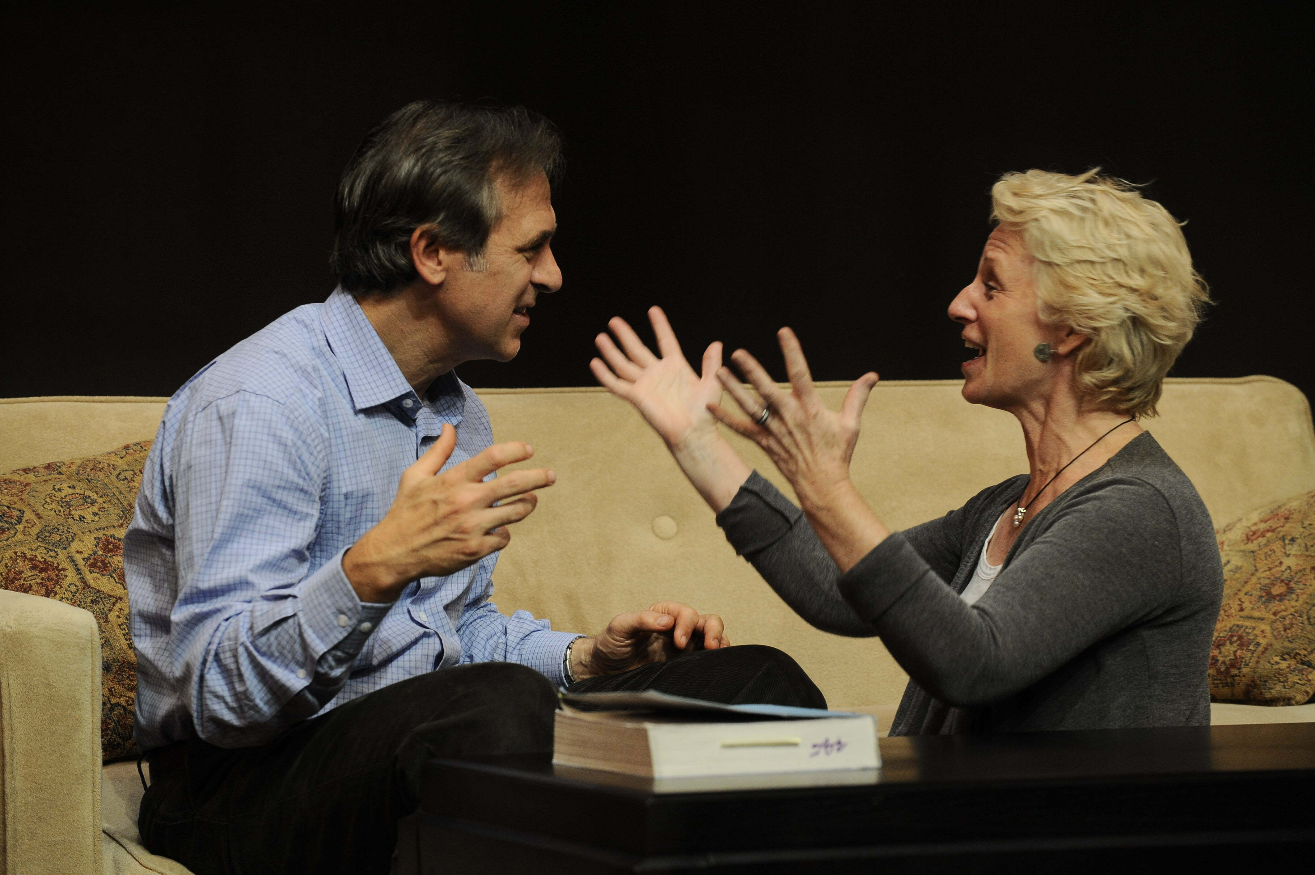 Amazingly, Edward Albee, a truly demanding hands-on playwright who requires approval of the cast before he gives rights to his plays, butchered his legacy by writing a worthless first act in 2007 (originally titled Homelife) that now must be mounted in order to present his fabulous 1958 one-act, The Zoo Story. The first act of the now titled: At Home At the Zoo is a wordy, repetitive boring piece that depicts Peter’s family life as a sort of set up for the brilliant The Zoo Story. Maybe it was Albee’s ego or a bout with dementia because why diminish the play that established you as a playwright with an inferior work such as Homelife?