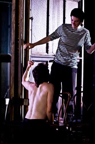 Among the stellar artistic choices in Baal are the terrific set design (by Brandon Wardell) with large windows with Keith Parham’s evocative lighting that aptly depicts the moods and atmosphere of the piece.  Baal’s language is poetic filled with harmony, rhythm that begs to sing. Composer Josh Schmidt (Adding Machine – A Musical and The Minister’s Wife) has written some exquisite music that brings Baal to higher level of art by emphasizing and enhancing Brecht’s words. We hear hymns, anthems and folksy music. Schmidt told me that much of his score for Baal was in the Portuguese musical genre called Fado (destiny or fate). Fado uses mournful tunes, a haunting longing for something or someone.  We hear Schmidt’s melodic music enriching the story as it creates a deeper understanding of the emotional torment of Baal and his compatriots.  I have never heard a finer use of original music in a Brecht play. Schmidt is a genius at the top of his art.