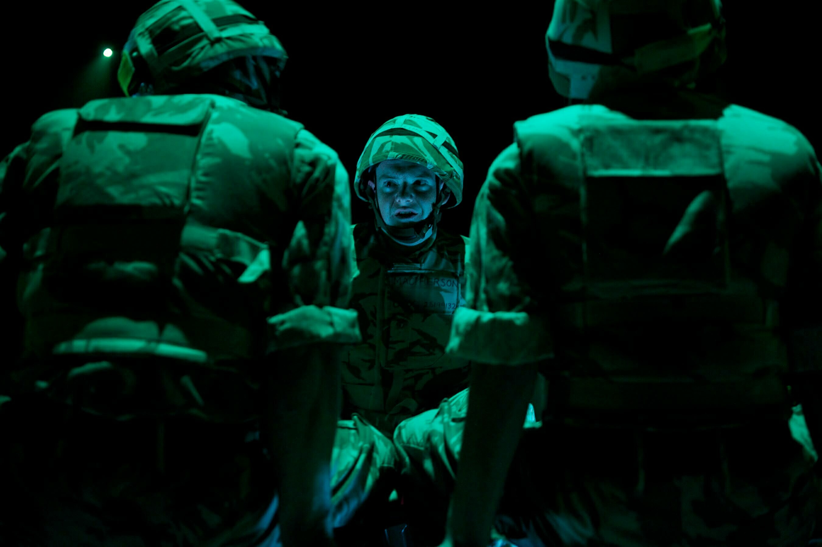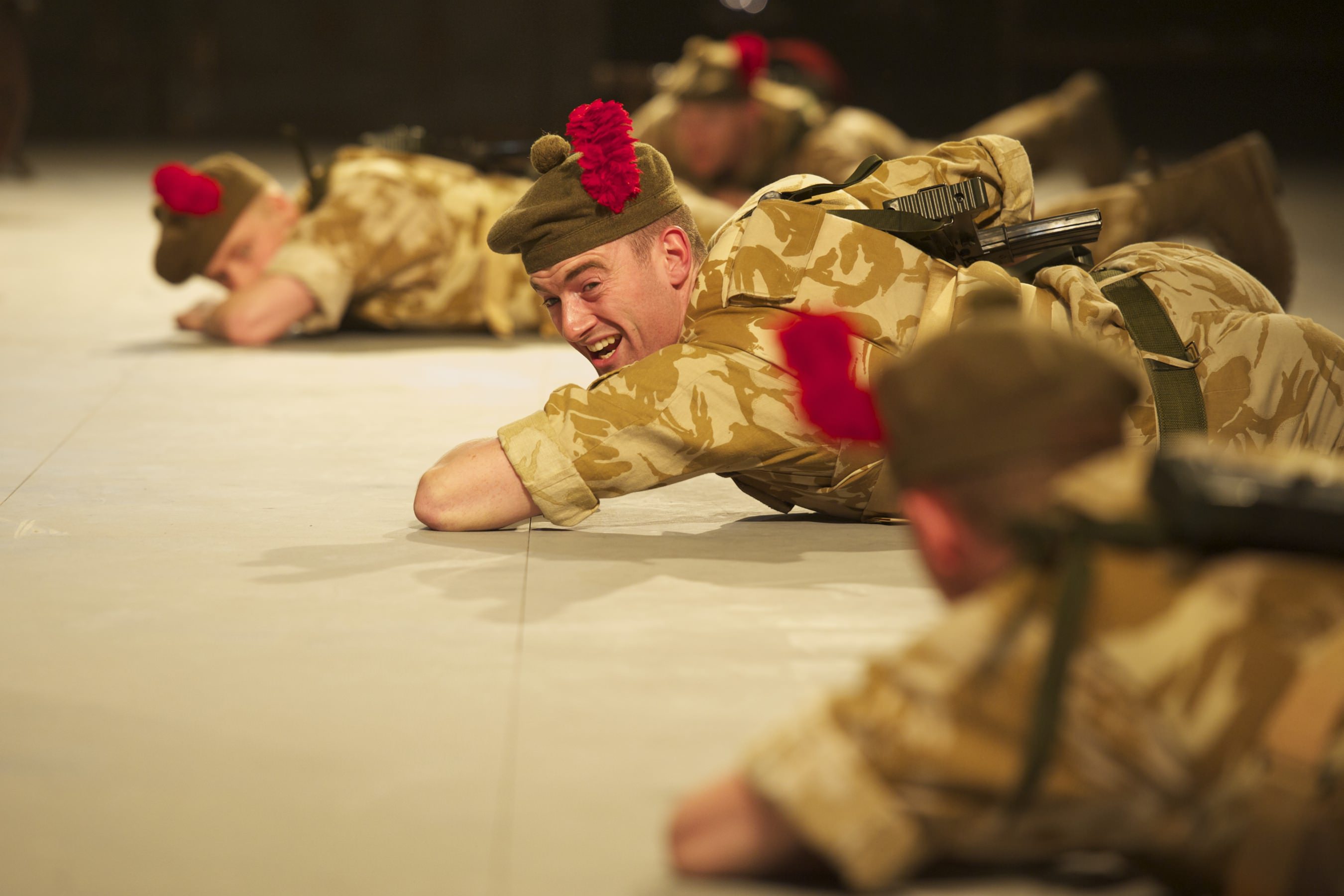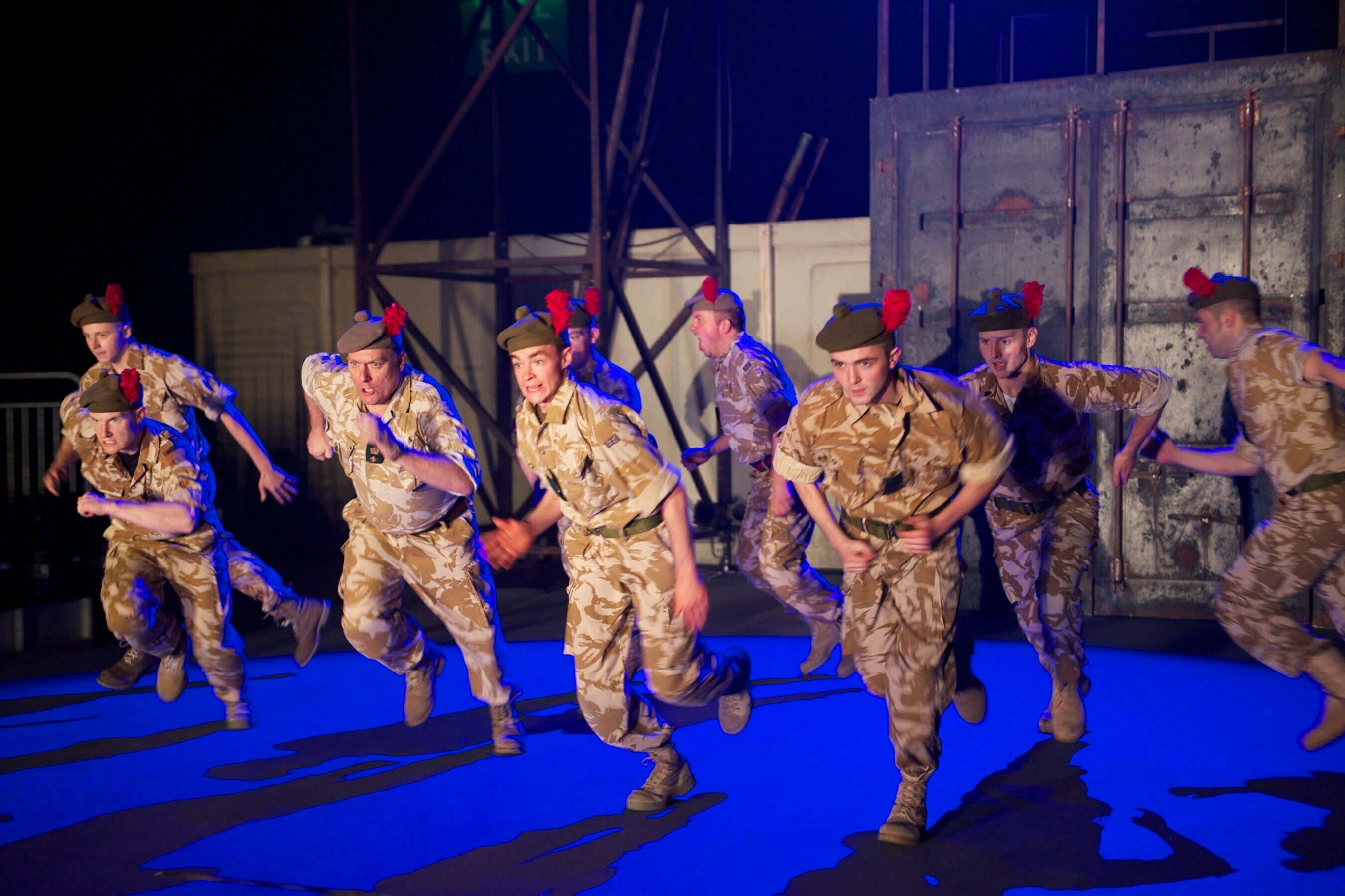 It is fitting that a story of a military unit – the Scottish Black Watch infantry of the British Army – be hosted before more than 600 souls at a former Army National Guard Armory in Rogers Park. Black Watch is an interesting blend of theatrical styles including songs, marches, personal interviews, stylistic combat and training movements with intense emotional outpouring that deeply tells the story of soldiers serving the British Army in Iraq.