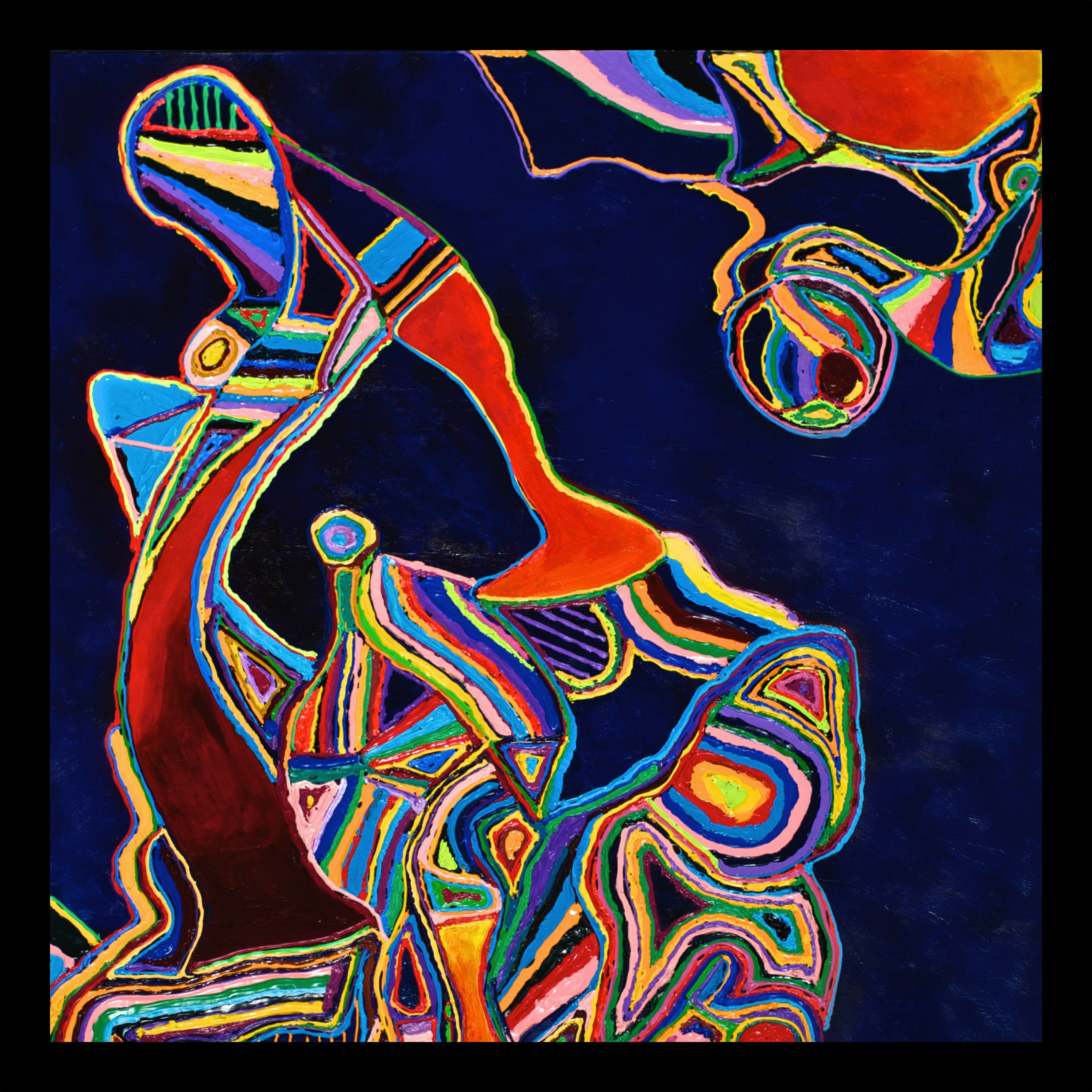 Kuzana Ogg from Bakersfield, CA, painted “Khshathra” is inspired by the dancing figure which she states as Epitomizing the Excitement of participating in the live musical performance that is Blue Man Group.