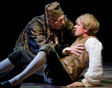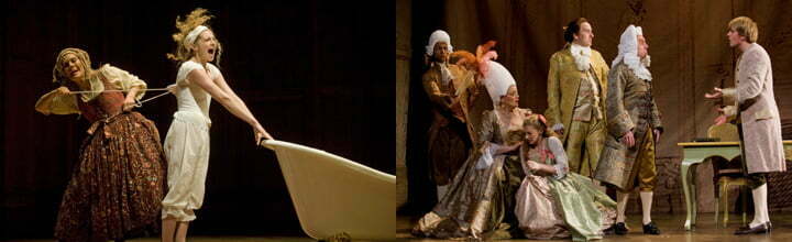 From the opening scene that finds Dr. Pangloss (the commanding Larry Yando) expounding his belief in pure optimism to the impressionable Candide, we realize that Voltaire’s satire is in good hands as is Bernstein’s music in the hands of Doug Peck’s orchestra. The elements of an adventure occur when Candide is conned into becoming a soldier in the Bulgarian army. As his world turns into mayhem, Candide keeps his wits as a true believer. As he always seems to survive all the calamities he’s confronted with, these travels become the focal point for Zimmerman’s masterful staging. Absurdity, romance, friendship abound throughout.