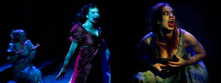 The story revolves around the young English girl, Laura, (the stiff Brittany Burch) living in a castle who becomes intrigued with a mysterious female house guest – Carmilla (terrific work by Michaela Petro). The two become lesbian lovers. The countryside falls victim to a series of bloody murders nimbly staged by the energetic cast. Many of the scenes are wildly thrilling and manically stage. Too bad we have to suffer through the numerous tedious ‘talky’ scenes that droned on before the action resumes.
