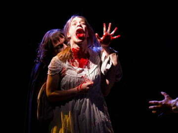 Written in 1872, LeFanu’s Carmilla was 25 years ahead of Dracula but it never reached the fame of Stokers’ Gothic horror story. Using Aly Renee Amidei’s wordy and weirdly lame adaptation, with director Scott Cummins’ questionable casting and unfolding with a slow pace, this Carmilla is a mixed bag of boring melodrama and predictable and ill-timed horrific bloody vampire fight and biting scenes. There are stiff performances, loads of screaming, and wild blood letting that unfortunately fails to either scare nor thrill. Some of the dialogue was so poorly written or translated and/or delivered by the cast that the audience reacted with belly laughs. That is not what you want if your trying to build enough suspense to scare audiences.