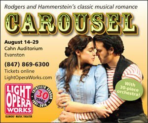 Light Opera Works presents “Carousel” through August 29, 2010 at Cahn Auditorium, located at 600 Emerson Street in Evanston. The show runs 2 hours 50 minutes with intermission. Performances are Wednesday and Sunday at 2:00 p.m., Friday and Saturday at 8:00 p.m. Tickets range from $32 to $92. Ages 21 and younger are half price. Call 847-869-6300 or visit www.musictheaterworks.com.