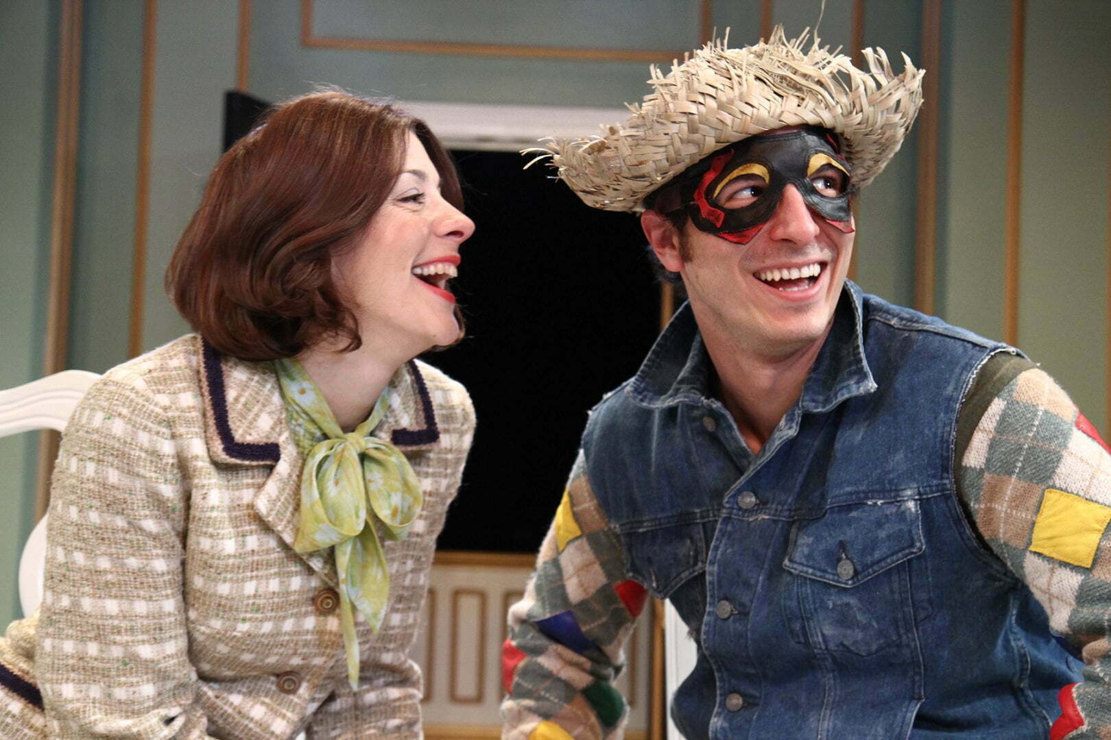 Another weakness of this production was the translation. It seemed very faithful (having not read the original French: being unable to read French, I am assuming), but it also came off very stiff. Much of the Harlequin’s language was vital and entertaining (which can’t only be the translation and must owe itself as well to Gamboa’s acting); but much of the other dialogue was old-fashioned, leaving me wishing to sweep the cobwebs off of it. Which is to say this: the production Douglas envisioned needed an adaptation, rather than a strict translation. It felt very much like a French parlor comedy rather than a hip, 60s reinvention.