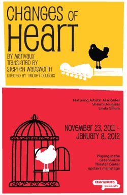 Changes of the Heart – or, more precisely, La Double Inconstance – is a decidedly odd play. It’s basically Marivaux staging a Moliere-style comedy and throwing in a Commedia del’Arte character to see what would happen. Which yields interesting results. Harlequin (a clown character with roots in the insolent slave in Plautus who perhaps reached his intellectual peak as Feste in Shakespeare’s Twelfth Night, or What You Will) is possibly the fondest-remembered character of the Commedia, and certainly shakes things up in a largely endearing way in Changes. But that doesn’t stop it from being an exceedingly strange play.