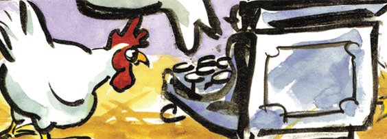 If you’re looking for a way to introduce your young child(ren) to more live theatre without the show title starting with “Walt Disney presents…”, I implore you to look no further than Lifeline Theatre’s inventive and winning re-mount musical production of Click Clack Moo: Cows That Type, now playing through December 5. Based on the best-selling picture book by Doreen Cronin and Betsy Lewin, CCM tells the story of two cows and a hen who are getting cold living in Farmer Brown’s drafty barn. Finding an old typewriter in a corner of the barn one day, they decide to petition Farmer Brown for some electric blankets by typing him messages to better communicate their needs. Of course, Farmer Brown doesn’t believe that cows can type, let alone need electric blankets, and so the story becomes a parable for children about the virtues of peaceful, democratic protest and never giving up the fight.