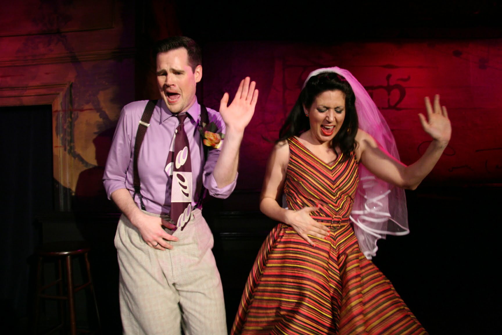 Benham on piano is joined by Alan Trachtenberg and Anthony Scandora on bass and percussions, and despite their being sparse in number, they make up for it in feeling, supporting an heartfelt ensemble of four through even the most riotous of Porter’s deliciously witty indulgences. The indisputable center piece of the first act, for example, is ‘Take Me Back to Paris,’ a medley tribute to Porter’s amorous fascination with the premier City of Lights. Ranging in tone from the coyly playful to the celebratory, this well-played love letter to Porter’s favorite city is charmingly enthralling. And with the cast decked out in Bill Morey’s period pieces of the 1940s and 50s—coupled with the tea-light lit interior of Ubique’s intimate space—‘Take Me Back to Paris’ manages to do just that. Thus being more than just a superb musical accomplishment, Anzevino’s production even succeeds in capturing something of the whimsical mood of those Parisian dalliances Porter himself loved so much.