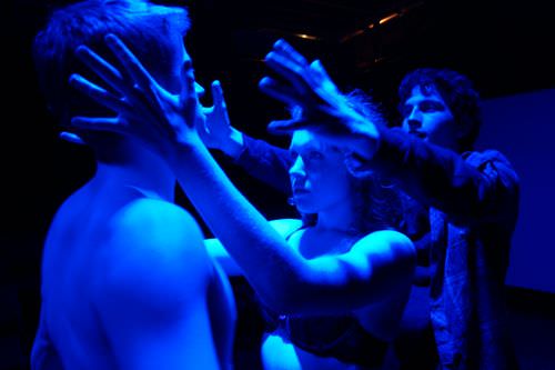 Without giving away too much, let me say that playwright Carlos Murillo structures the real world scenes plausibly as the scenario of love, obsession and betrayal unfolds in reality. McCartney and Kirby were outstanding in these scenes. The escalation of the dark play game eerily moves into the depths leading to the brink of death. The emotional and physical rush one of the players gets makes the game worthwhile. It is refreshing to see several newbies land their roles with skilled aplomb. I especially liked Clancy McCartney performance as he convincingly played a sadistic amoral teenager. His narrative skill early on got us engaged into the world of the dark play. My only quibble in this production comes from the annoying background music that often distracted me form the spoken action. I’d turn off the background music. But, Dark Play or the stories for boys is a worthy journey into the potential power of the Internet to shape personal foibles.