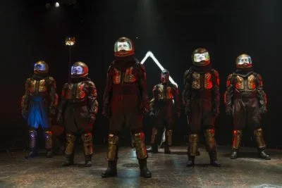 Add the staging problems like having the thrust stage built too high that produces bad sight-lines for much of the audience and the difficulty comprehending the action is enhanced. The lack of movement or action slows down the work.  Let me try to explain what I saw. First, let me state that I’d not a sci-fi fan and this “hard sci-fi” is totally alien to me. I got lost in the early dialogue trying to set up the adventure for the characters.