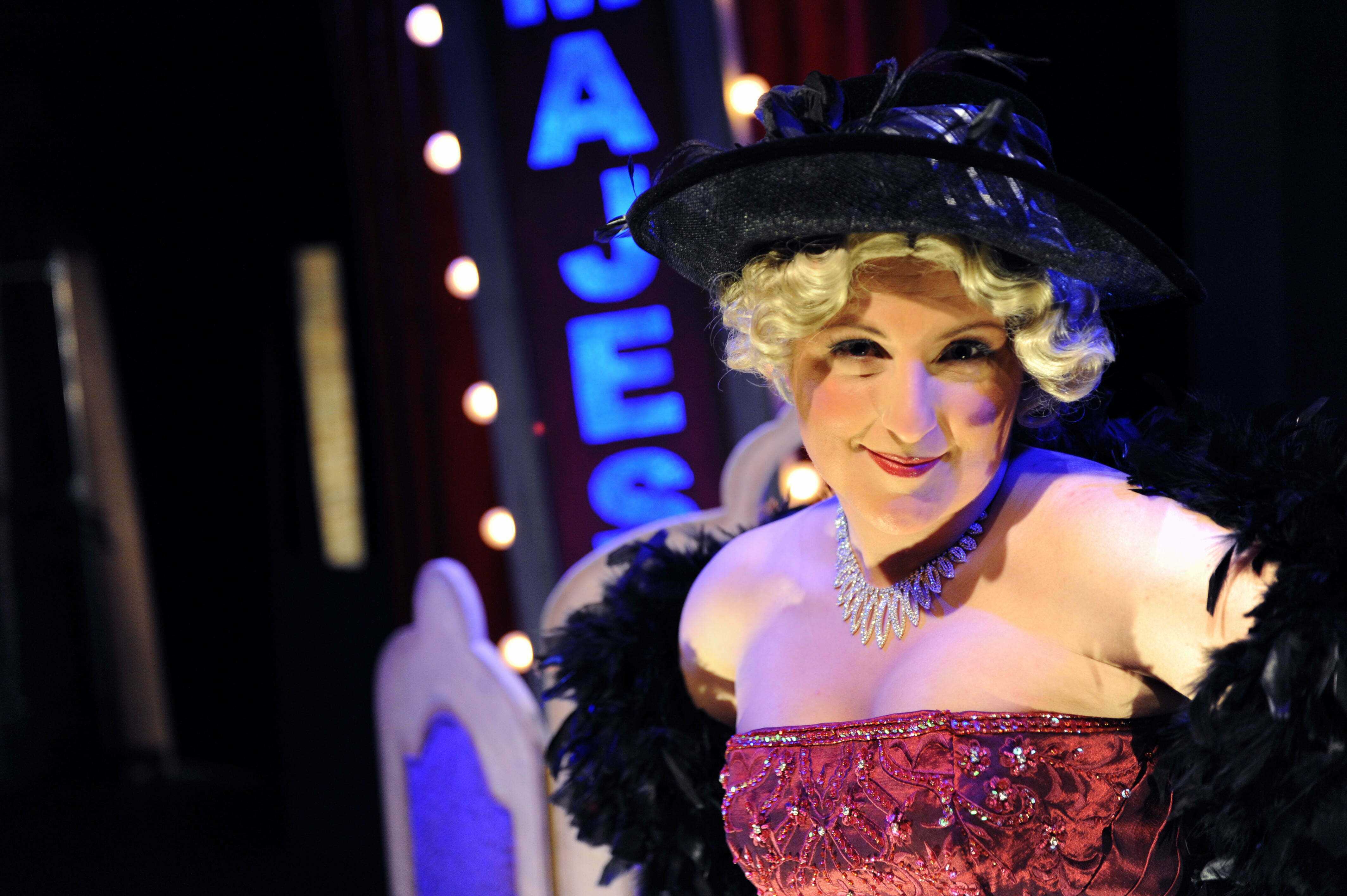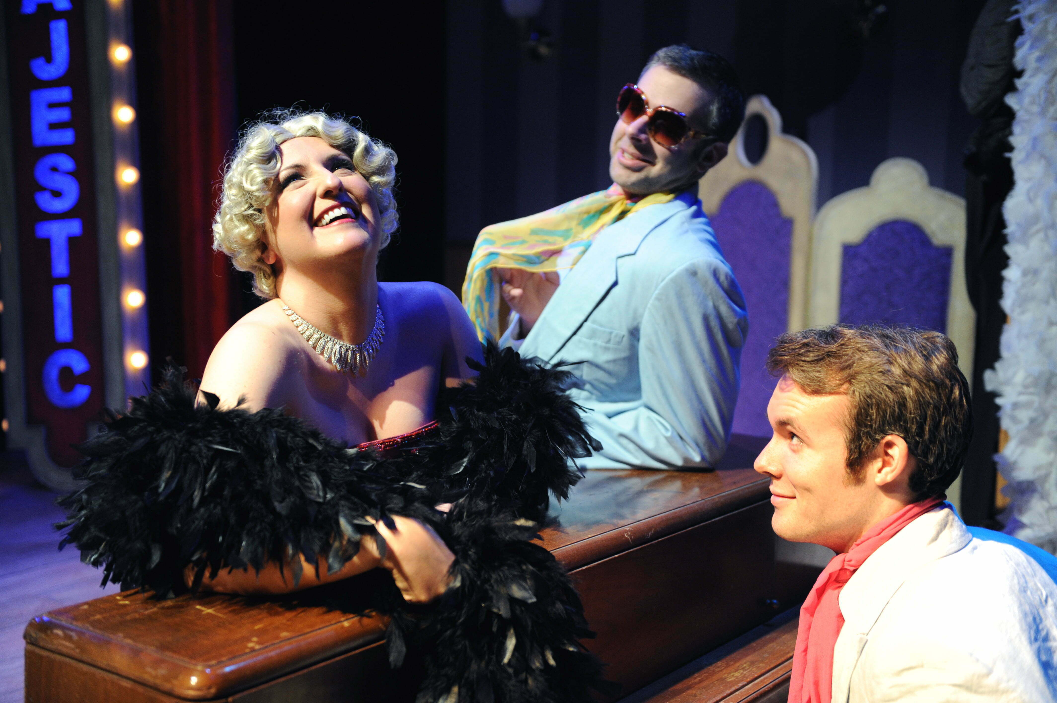 We also have a quite strong work from David Tibble who moves swiftly from the nerdy Mae West fanatic to a shy cross-dressing possible mate for Jo. Tibble also utilizes his triple talents (acting, singing and dancing) to move from one of Mae’s companions to another. He also works as an on stage ensemble player.