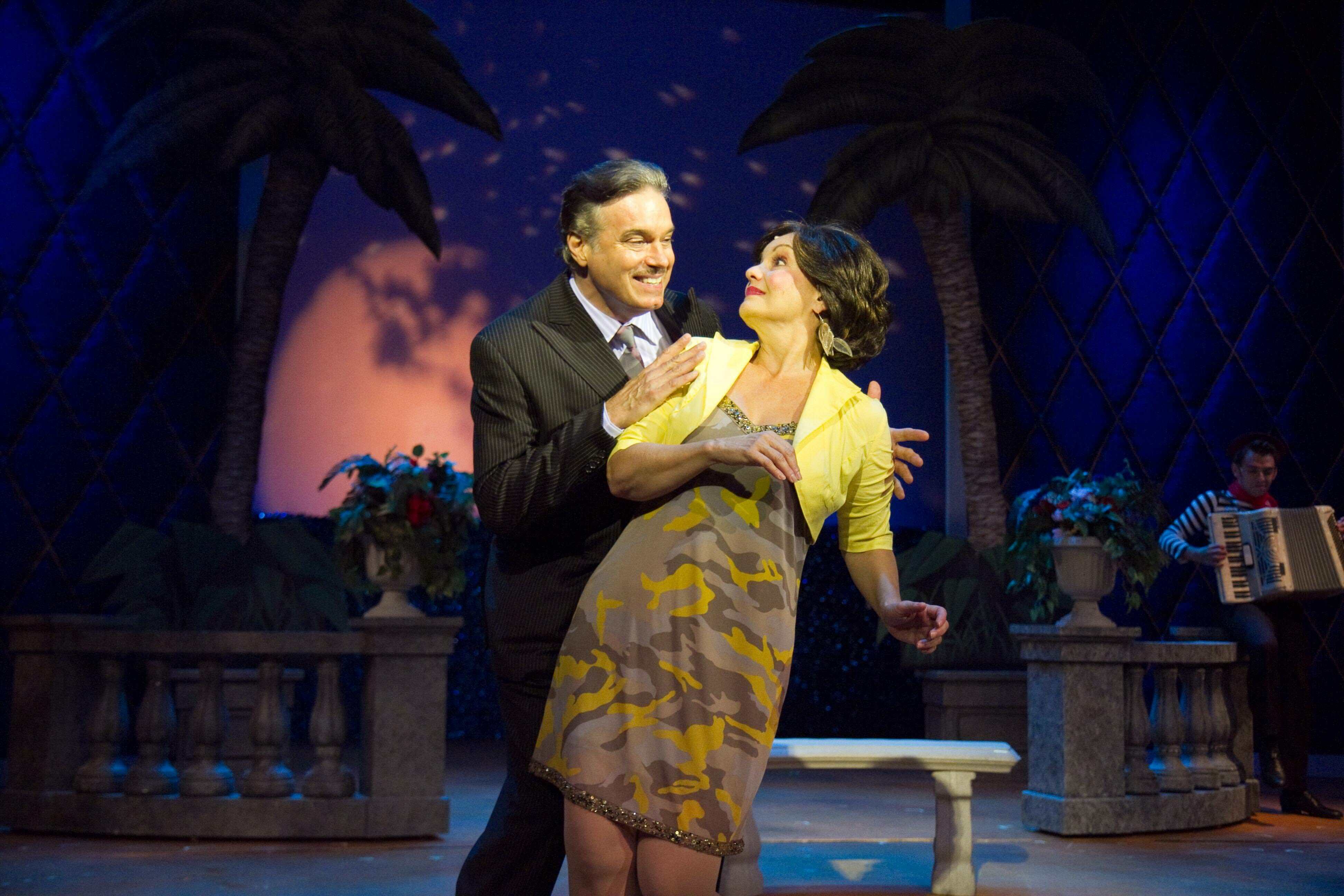 Besides the swank sophisticated Latin-rhythmic dances, marvelously choreographed by Stacey Flaster, Scoundrels features exquisitely timed comic turns form Larry Wyatt, Michael Mahler, Larry Adams and especially Paula Scrofano, as the wacky and lonely American millionaire Muriel. Dara Cameron beautifully plays Christine Colgate who isn’t who she appears to be.