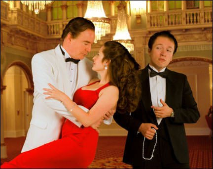 Besides the  swank sophisticated Latin-rhythmic dances, marvelously choreographed by Stacey Flaster, Scoundrels features exquisitely timed comic turns form Larry Wyatt, Michael Mahler, Larry Adams and especially Paula Scrofano, as the wacky and lonely American millionaire Muriel. Dara Cameron beautifully plays Christine Colgate who isn’t who she appears to be.