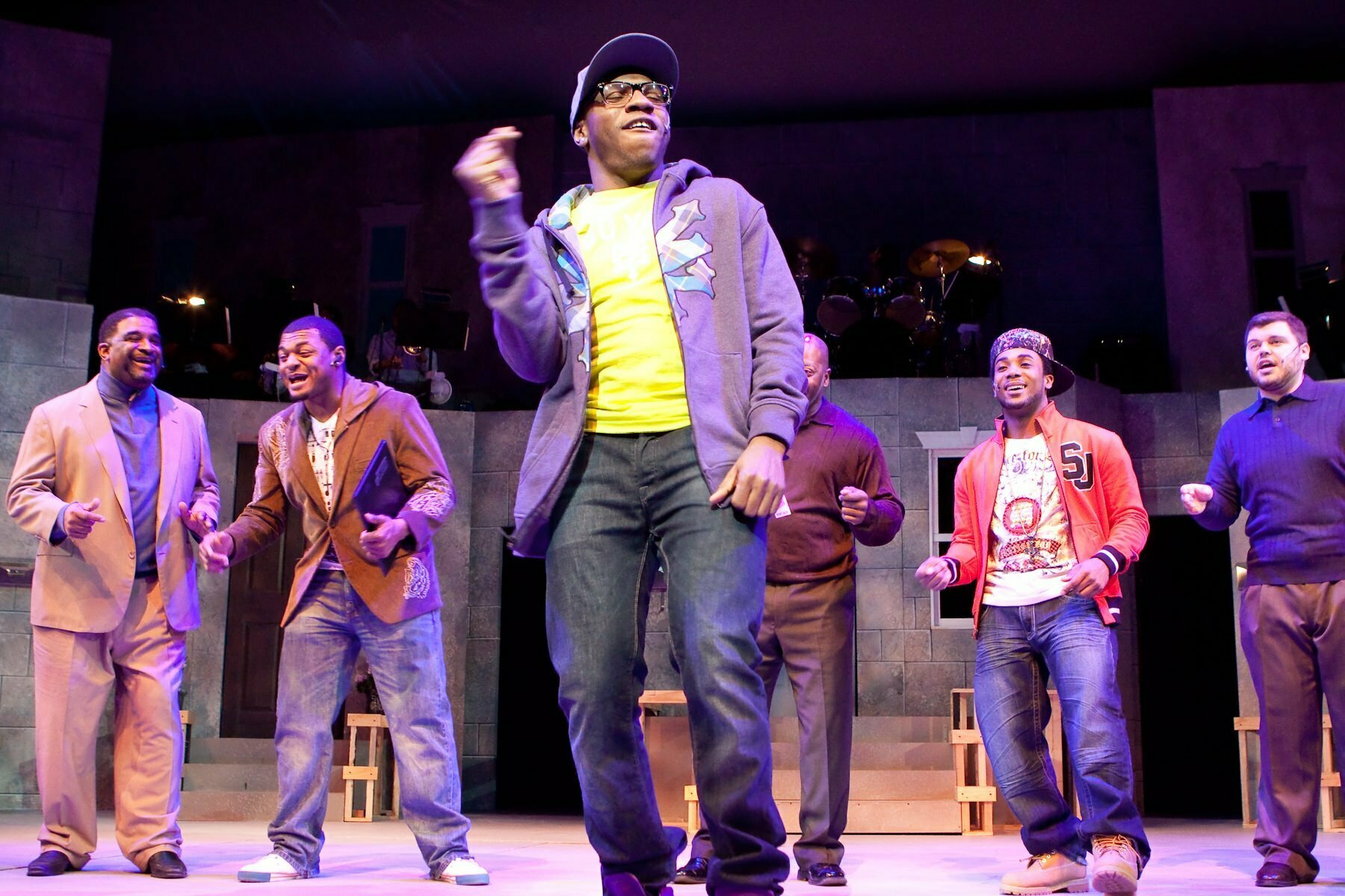 The show’s setting—the “highly affluent neighborhood” of Unison Hills—is one of those whimsical communities too good to be true. The kind where doo-wop groups bust out pitch-perfect harmonies on the street corner, brassy mezzos croon from their front stoop, and funky young beatboxers stride down the street. To be sure, the book for this infectious jukebox review is nothing to write home about. The interracial residents of Unison Hills are all musicians—some with singing careers just getting underway, others whose days of stardom are long behind them. Odell and his wife Frances are having problems establishing mutual respect in their marriage. Their neighbors, Clarice and Clarence, have a wayward young brother, Cleveland, come to stay with them. And a few doors down, young Marie’s efforts to forge her independence try her father Marcus’s patience. But From Doo Wop to Hip Hop’s narrative premises—as paper-thin as they are—do what they should, gently ushering an eager audience through an otherwise breezy two hours of stellar musical revue.