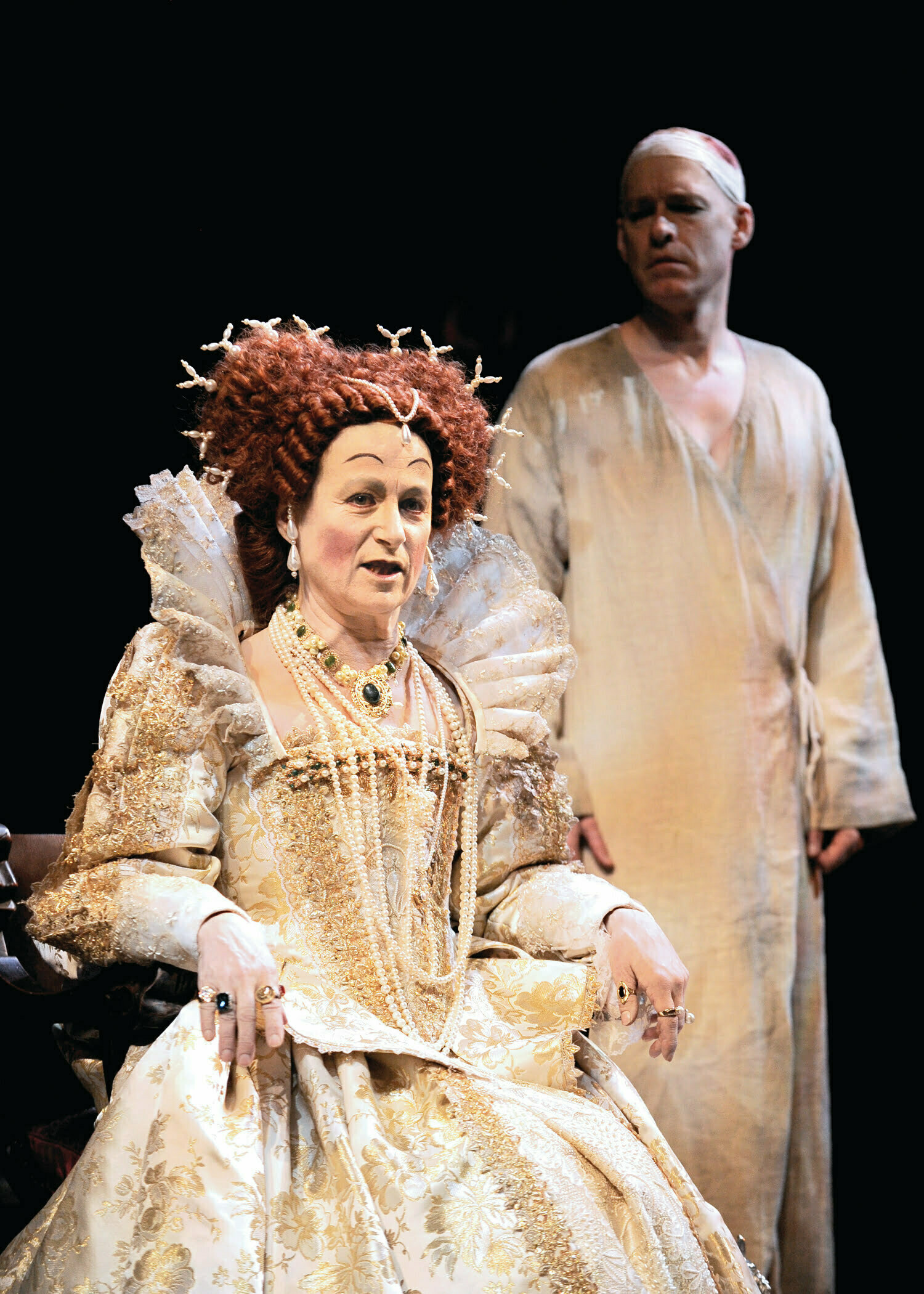 “On the eve of the beheading of her court favorite and rumored lover, the Earl of Essex, Queen Elizabeth was entertained with a royal command performance by Shakespeare and his company (of Much Ado About Nothing). Longing for distraction, the Queen visits her stables where the actors are lodged for the night. There she finds the man who plays Shakespeare’s leading ladies (here as Beatrice), and in their passionate confrontation, the actor and his Queen come to shocking revelations about sexuality, identity and love.” (from the press notes)
