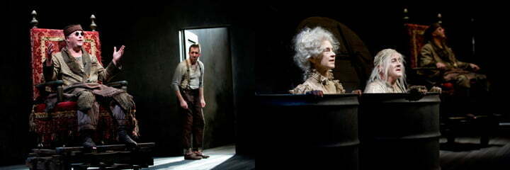 In true Beckett form, hardly anything happens, yet there is so much going on. The entire action takes place in a blank interior where Hamm (William Petersen), a blind man unable to stand, and his servant Clov (Ian Barford), who is unable to sit, go through their daily rituals and await the end of everything. They are also pestered by Hamm’s parents, Nagg and Nell (Francis Guinan and Martha Lavey) who live in a pair of cylindrical containers awaiting the end of their lives. Similarly to Beckett’s Waiting for Godot these characters are all awaiting something: death, freedom, happiness, pills, food, etc… However, these characters are trapped in a condensed world rather than the expanse void of Godot, which makes the action more intimate. It is as if the characters are aware of the presence of the audience, yet they do nothing different from every other day. The audience is the voyeur, but the characters don’t mind. The other beauty of Beckett is his rhythm; everything (including pauses, rests, and movements) are written into the script. A Beckett play is like a piece of music, the notes are the same every time but each performance is different depending on the musicians (actors) and conductor (director). Mr. Galati has taken these expert musicians and created a piece of music that resonates at a level high above the average production of this play. It is music to my ears.