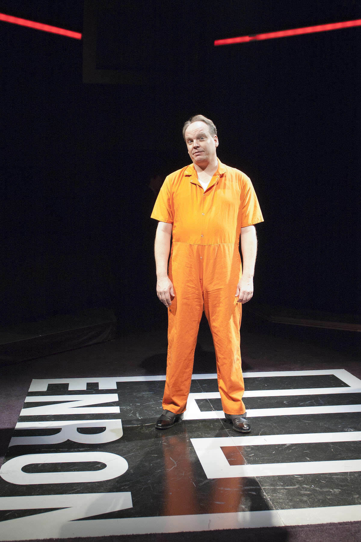 The superb casting included Bret Tuomi playing the manic and charismatic Enron president – Jeffrey Skilling. His grandiose vision allowed him to rationalize his schemes to create wealth before there was actual wealth. Tuomi’s energetic and highly emotional command of his role anchors the drama. As he comes apart, Tuomi is most tragically human as the fallen leader. Amy Matheny plays Claudia Roe, Skilling’s rival to lead Enron while Sean Fortunato plays the weird nerdy financial wizard Andrew Fastow – the clever slight-of-hand account who creates the structure for Enron’s illusion of profits when there were only losses. Fortunato uses his amazing comic skills to give Fastow a psychotic delusional dimension. Terry Hamilton plays the CEO of Enron Kenneth Lay as the patriarch who delegates authority while keeping the big picture alive.