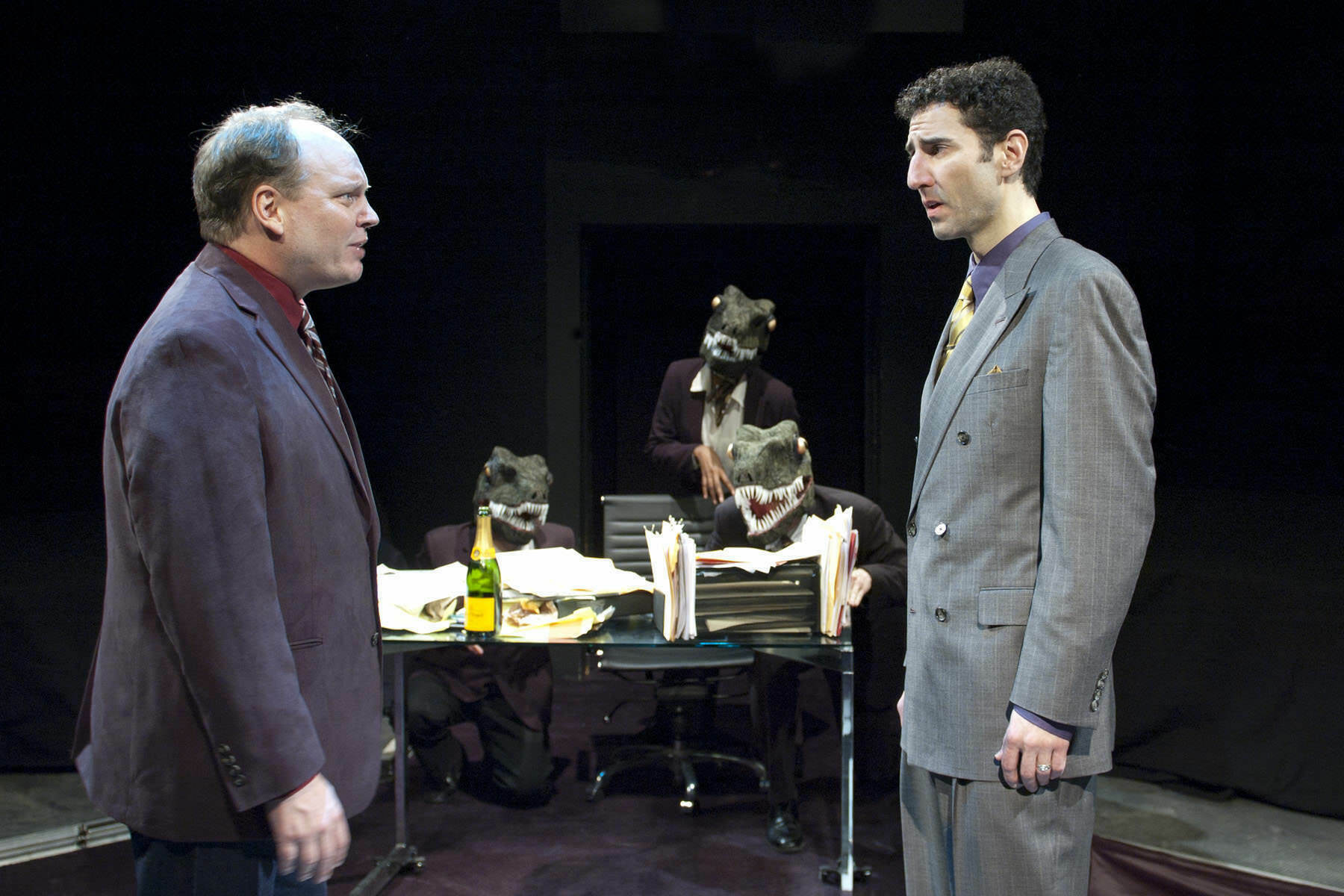 TimeLine Theatre’s 50th production is another historical drama adding to their long list of exciting productions. with director Rachel Rockwell, a musical director and choreographer, at the helm, Enron has some unique, quite theatrical staging to underscore the dynamic story of Enron Corporation. The fast-paced scenes include symbolic costumes, mini-manic business action scenes with historical context from Mike Tutaj’s video projections.