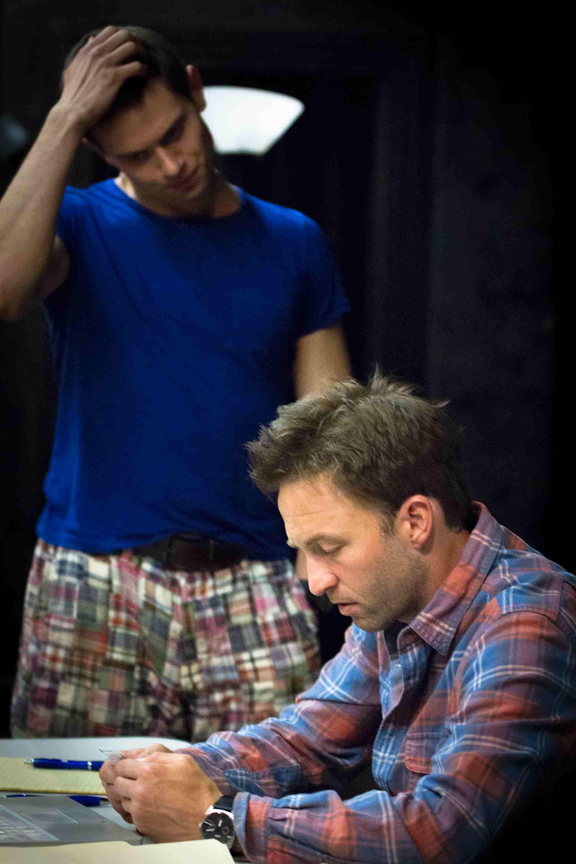 FatPig_Rehearsal08Nevertheless, JJ Phillips gives a charismatic performance as the frat-boy-wannabe Carter, though perhaps he is charismatic to a fault. When explaining to Tom, for example, why society has a natural revulsion for gays, fat people and the elderly (because they remind us of how dangerously close we all are to being uncomfortably vulnerable), there’s a certain menacing spirit missing from the speech. Almost too funny for his own good, Phillips often comes across as more helplessly immature than coldly calculating—which again, comes dangerously close to giving him a kind of ‘moral pass.’