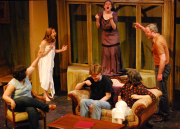 As part of Lanford Wilson’s Talley Trilogy, Fifth of July is the 1977 gathering of the Talley clan in their Lebanon, Missouri home. The clan is once more in turmoil. The play centers on Ken Talley (Stephen Dunn), a gay paraplegic Vietnam survivor who has inherited the decaying summer home. Jed (Billy Fenderson), Ken’s live-in lover is busy with the plants and flowers as the clan gathers to celebrate the 4th of July.
