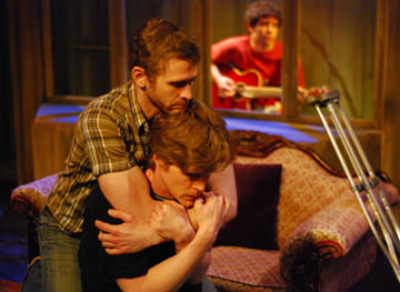 The drama is laced with biting digs as we get to know this family that is filled with eccentrically colorful characters each with a story to tell. Filled with 60′s activists now struggling to fit into to society, the Talley’s and the Landis’ converse back in rural Missouri to support Sally (Joanne Riopelle) as she decides to spread her late husband’s ashes around the boat house. There are several dynamics emerging: Ken’s struggle whether or not to go back to teaching high school after his war injury. Ken and his lover Jed making a home at the Talley house. John Landis (Josh Atkins) and his wife Gwen (Erin Myers) frantic efforts to move on from political activism to corporate ownership to making Gwen a country music singer. Former hippie June Talley (Whitney Hayes) struggles to raise her child, Shirley (Glynis Gilio)–an obnizious 13 year old.