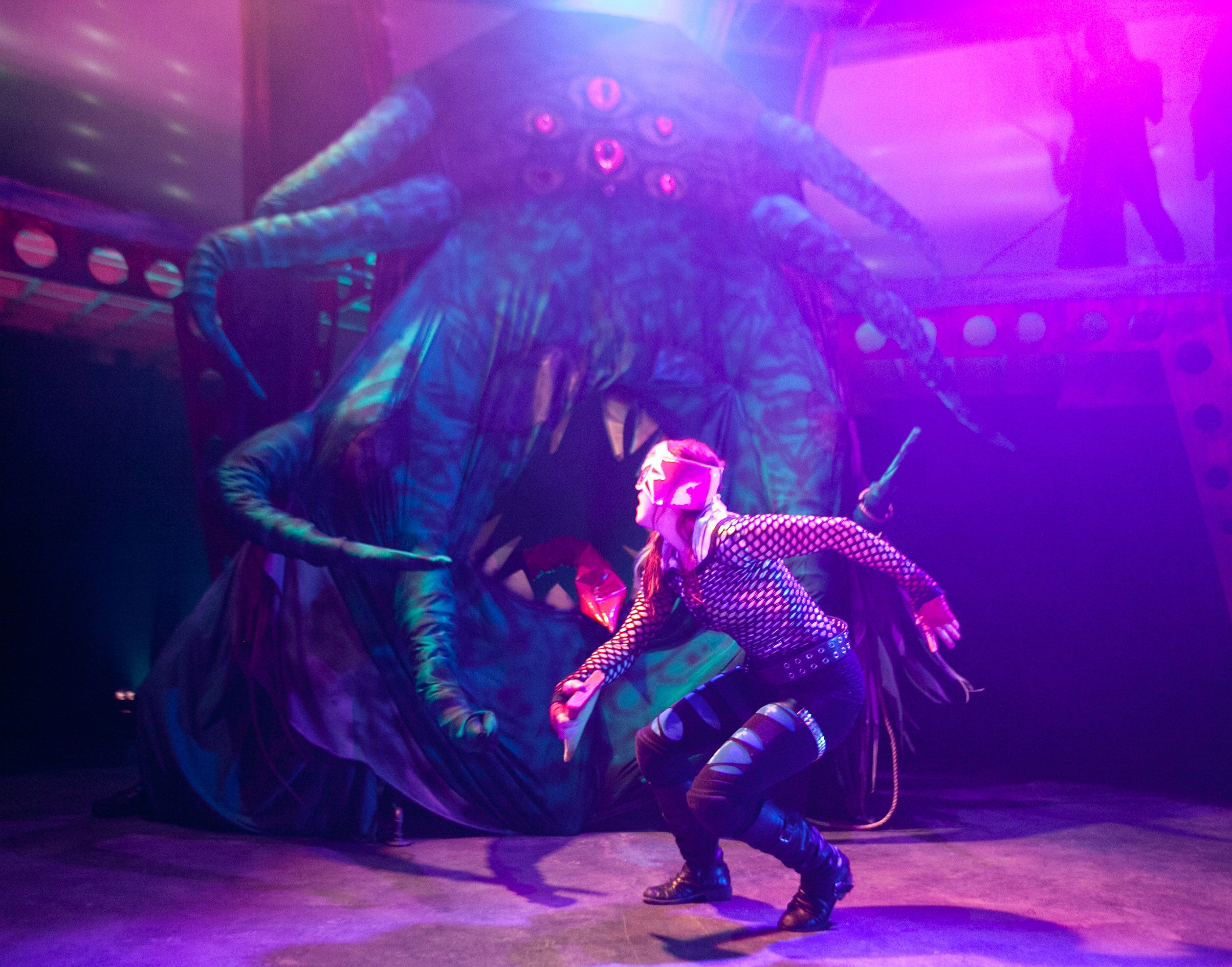 • The undertaking seemed enormous and some of the puppetry, costumes and choreography were really great. Some really fine visuals and EV, played by Sheila O’Connor, was especially good. The creativity and hard work was evident. Not sure whether it was worth the effort though. Can Sci Fi and all these effects be done live and is the effort worth it? Not sure, but there were some tremendous moments, and I loved all the surprises. Perhaps some cutting to a one act could make the difference and help to sustain the better moments.