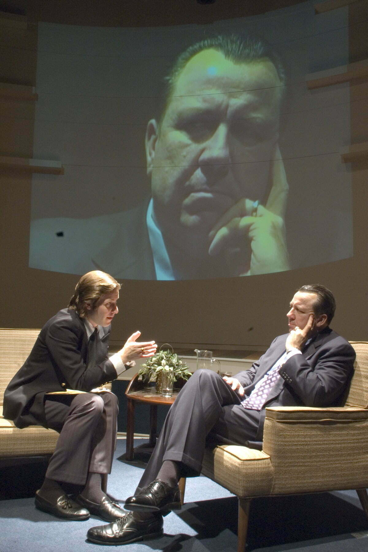 Terry Hamilton’s facial expression, jumpy eyes and restrained vocal tones were riveting. he has internalized Nixon’s psyche. Andrew Carter is smoothly nails Nixon in that last interview that the TV monitors caught him and Nixon in complete synchronicity. What a wonderful theatrical moment!