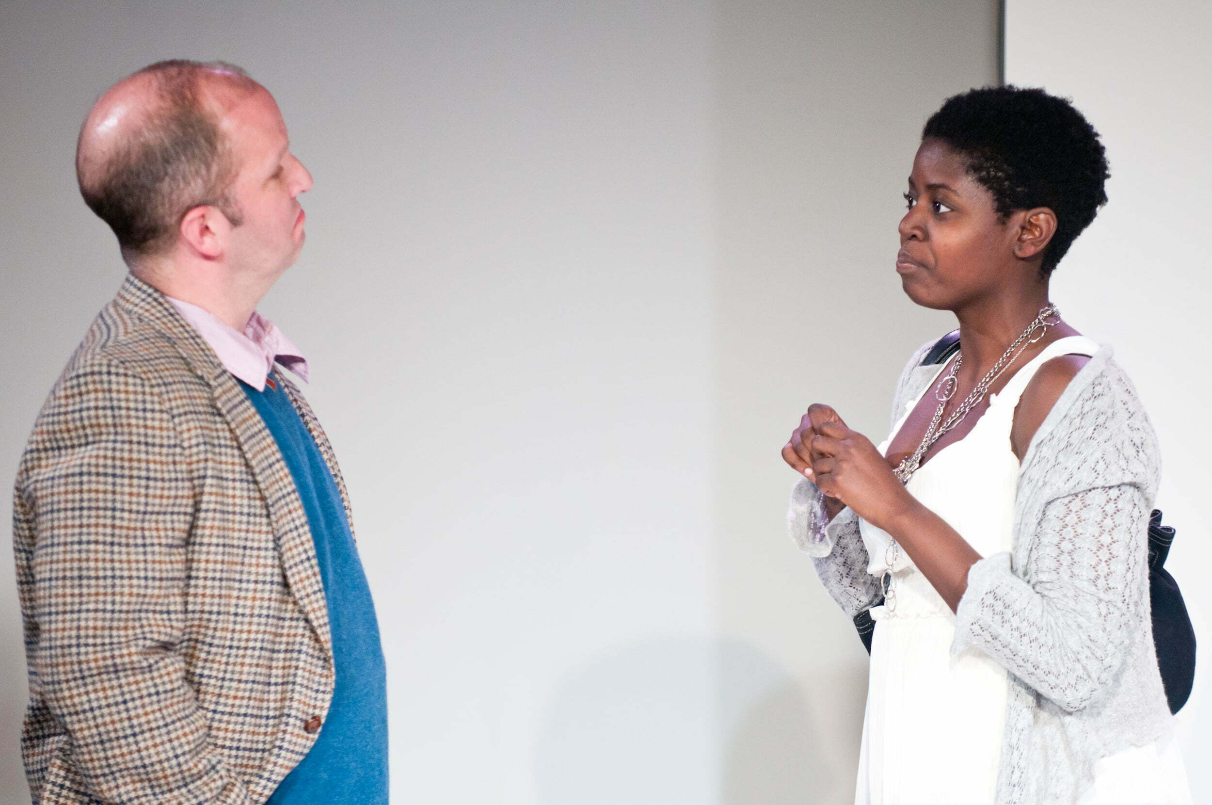 The short scenes mixed with those inexplicable fraudulent pop celebrates left me confused. I was able to ‘get’ the gay couple that had one a playwright – Bixby (John Zinn) struggling to get produced. After many rejections, he decided to send in his plays not from himself but from a fictional African-American Lesbian woman (Sam Bailey) in a wheelchair. This fraudulent appeal to the quota-minded theatrical liberals got him produced. He hires an actress to play the playwright. She decides to keep the role alive once the play is successful. Somehow, she is never able to be exposed despite Bixby wanting to be credited with the work he actually wrote.