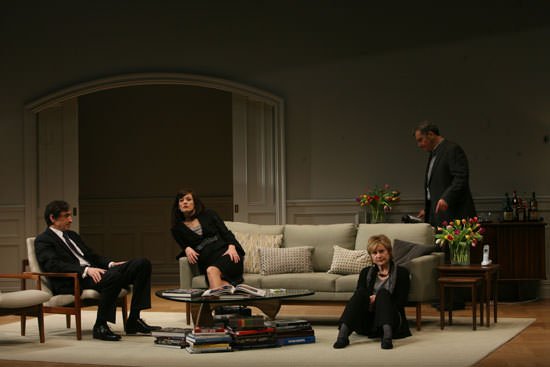 And yet I found the Goodman’s production, while good, still wanting.  It started off very strong; the four actors and director had complete control.  However, as the piece went on, it lacked the restraint that the play needs to be really exceptional.  The heart-wrenching moments are far less heart-wrenching when they are blatantly, bombastically on the surface.  They should need to be dug out, a bit – their excision should be painful.  And although Rick Snyder was adept at directing the audience’s attention to where he wanted it to go (all the subtleties of body language, slight movements, a wry glance were caught), he missed the subtleties of the emotions: The neuroses and nervousness that led to one character’s eventual vomiting were not stressed enough, so the hurling seemed instead to come out of nowhere.  Which is not to say that the actors were anything less than good: indeed, David Pasquesi (Alan) played his role perfectly.  Beth Lacke (Annette) was marvelous for the first half of the play, but, like Mary Beth Fisher (Veronica) and Keith Kupferer (Michael), seemed to lose control as the play went on.  Indeed, the shouting match that the play necessarily devolves into was overwrought, volume substituting for intensity.  Because of the height of the emotions, Annette’s impulses regarding her husband’s cell phone and the tulips lacked the shock and Pinter-esque, uneasy horror that should be evoked.  Indeed, the audience cheered when she cut her husband off from his job.  Keith Kupferer’s Michael was presented as an archetypal “American working-class” man, and that side was played up (loud, Brooklyn drawl; gruff and insensitive); but his insecurities (the feeling that he may not belong in his neighborhood, with high-powered lawyers for neighbors) were glossed over.
