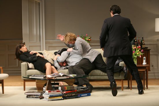 Which may be the problem: maybe this play just doesn’t work in an American setting.  Maybe the four people on stage acted like typical Americans would act – but that doesn’t further the piece; in fact, it detracts from it.  The typicality of these four Americans – loudmouths who get their way with volume and overwhelming force instead of sharp-tongued argument – makes this God of Carnage more of an oddity, and a farce, than it was ever meant to be.  Yazmina Reza once said, “I would like to see [audiences] laugh at the right moments.”  In this production, because of the decisions made by director and cast, they do not.  Which is not to say that this is a bad play, or that this production is not entertaining – on the contrary.  It is simply not all that God of Carnage could be.