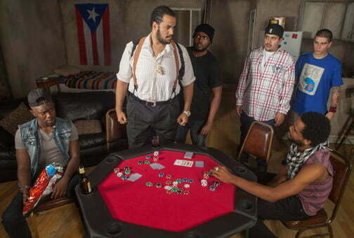 There are still some sophomoric touches (this is Zieman’s second production) to this update. Some exposition is ponderously overdone, particularly in regards to the revelations of these character’s back stories. The actual grift doesn’t really come across clearly, and it’s best to just ignore the details and focus on the threatening tone that pervades all. An air of menace is expertly maintained by Winston, who creates a bombastic character who can turn moods on a dime—a truly terrifying paterfamilias. Moments of levity come via Jove’s over-the-top El Grito, a spastic wild card (joker?) in the deck.