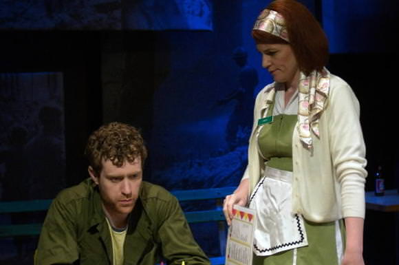 Chicago Dramatists, the playwrights’ theatre, has a 34 year history of developing and mounting new works. Their latest, Homecoming 1972 by Robert Koon is a nicely acted slice of life of life about the physical and emotional effects of war on a small town average guy. The work is played out in a series of two person scenes. The setting is in a small Minnesota town circa 1972 that finds Frank (Matt Holzfeind) as a physically wounded (bad back) and emotionally scared Vietnam veteran struggling to come to terms with the mundane simple world of rural Minnesota upon his return from the trauma of War.