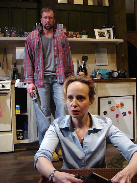 LaBute’s psychological thriller moves from suspenseful to a mystery as the  conflict gets us to first empathize with Betty then with Bobby than more truths get us wondering. I’ll say no more but I admire the play’s structure nimbly performed by Cox and Lowe. Lies versus the truth and how living each can complicate life is deftly presented. The rage and the chemistry between Darrell W. Cox and Natasha Lowe is honest and palatable. Cox moving from crude slob to honorably in search of the truth is marvelously performed as is Lowe’s transformation from loving wife and scholar to  deceitful promiscuous woman living lies.