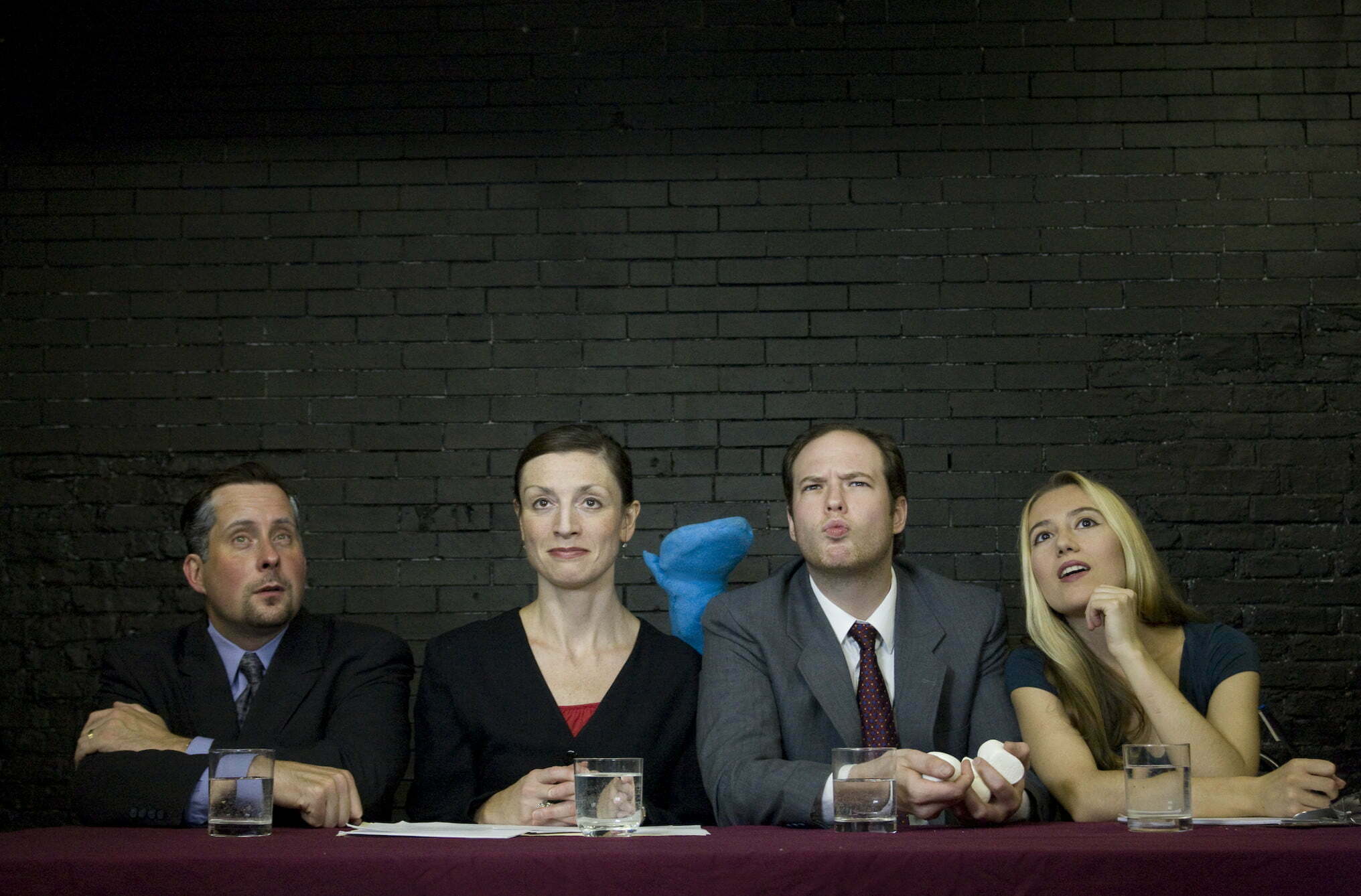 Things get worse when the human bureaucrats visit the aliens. These government officials are a group of misfits that includes a neurotic psychologist, a snack-eating Special Agent, an uptight Secretary and a obnoxious General. These stereotypical characters were played so over-the-top (especially by Mary Jo Bolduc and Christopher Rex Jacobs) that any hint at humor was crushed by all the screaming, goofy gestures and manic movement.