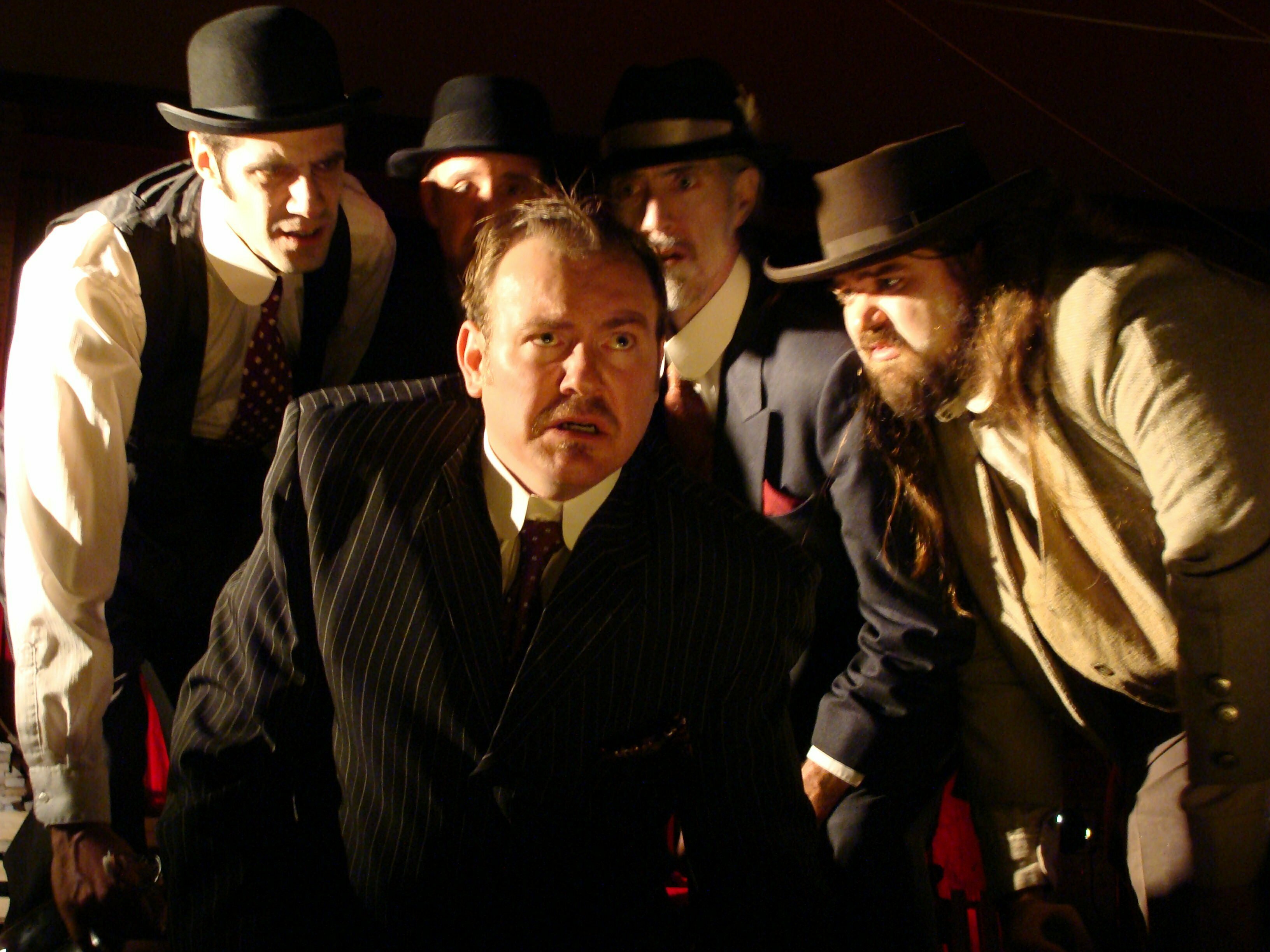 This assortment of richly developed and superbly played characters deftly interact and advance the struggle between Garga and Schlink. The performances are terrific including a clever vaudeville song sung by Schlink’s crew while they beat-up Garga.