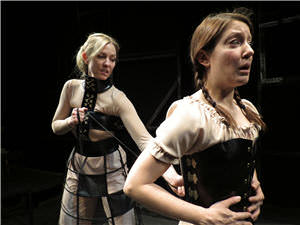 Fueled with interesting costumes (by Darcy Hofer ) and underscored by the terrific sound (by Chris Kriz) on an iron bars-like black box set (by Mike Mroch), Ironmistress unfolds as an adventurous nightmare series of stories and role-reversals wherein both the mother and daughter attempt to purge their demons before moving on in life.
