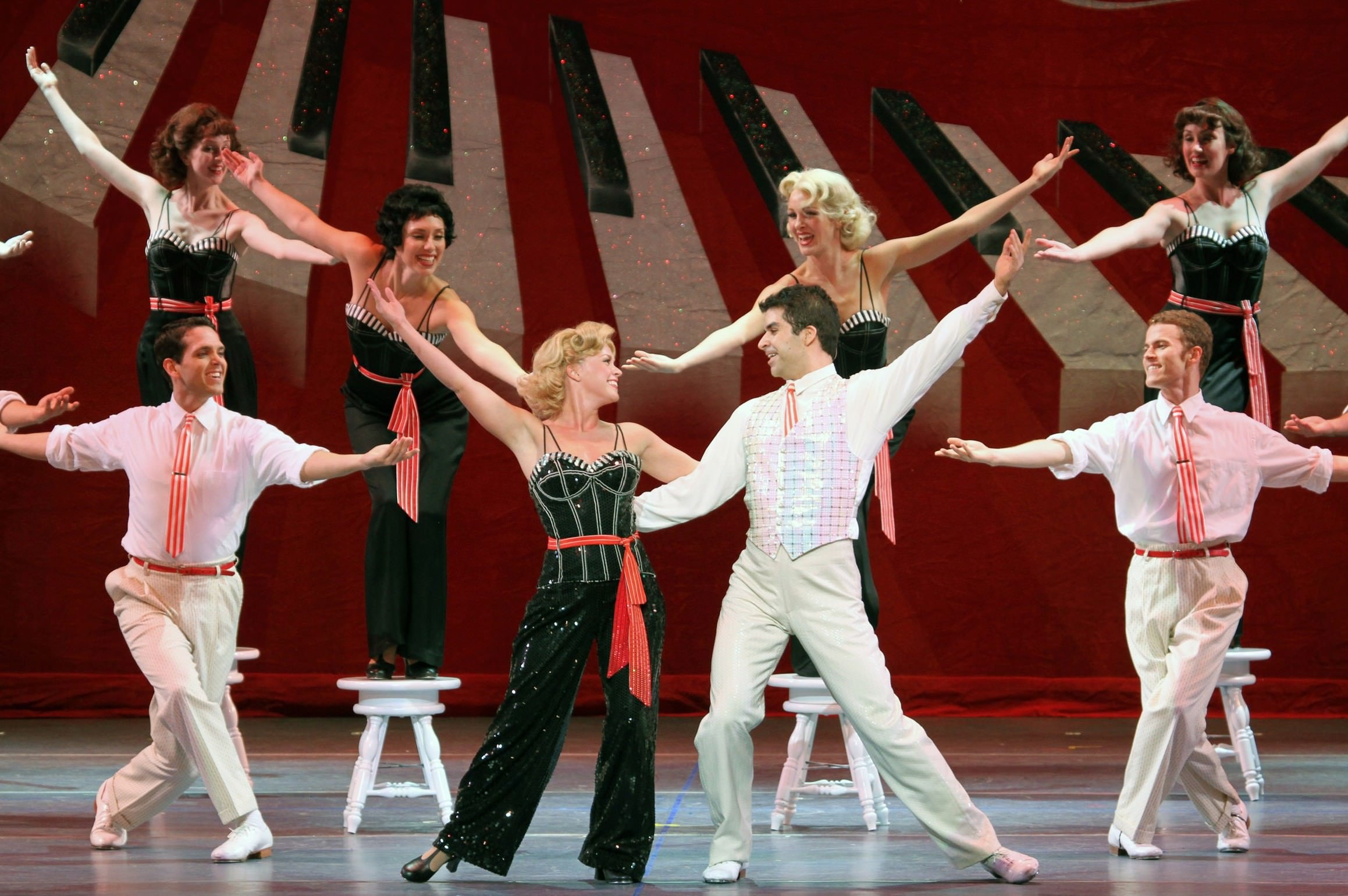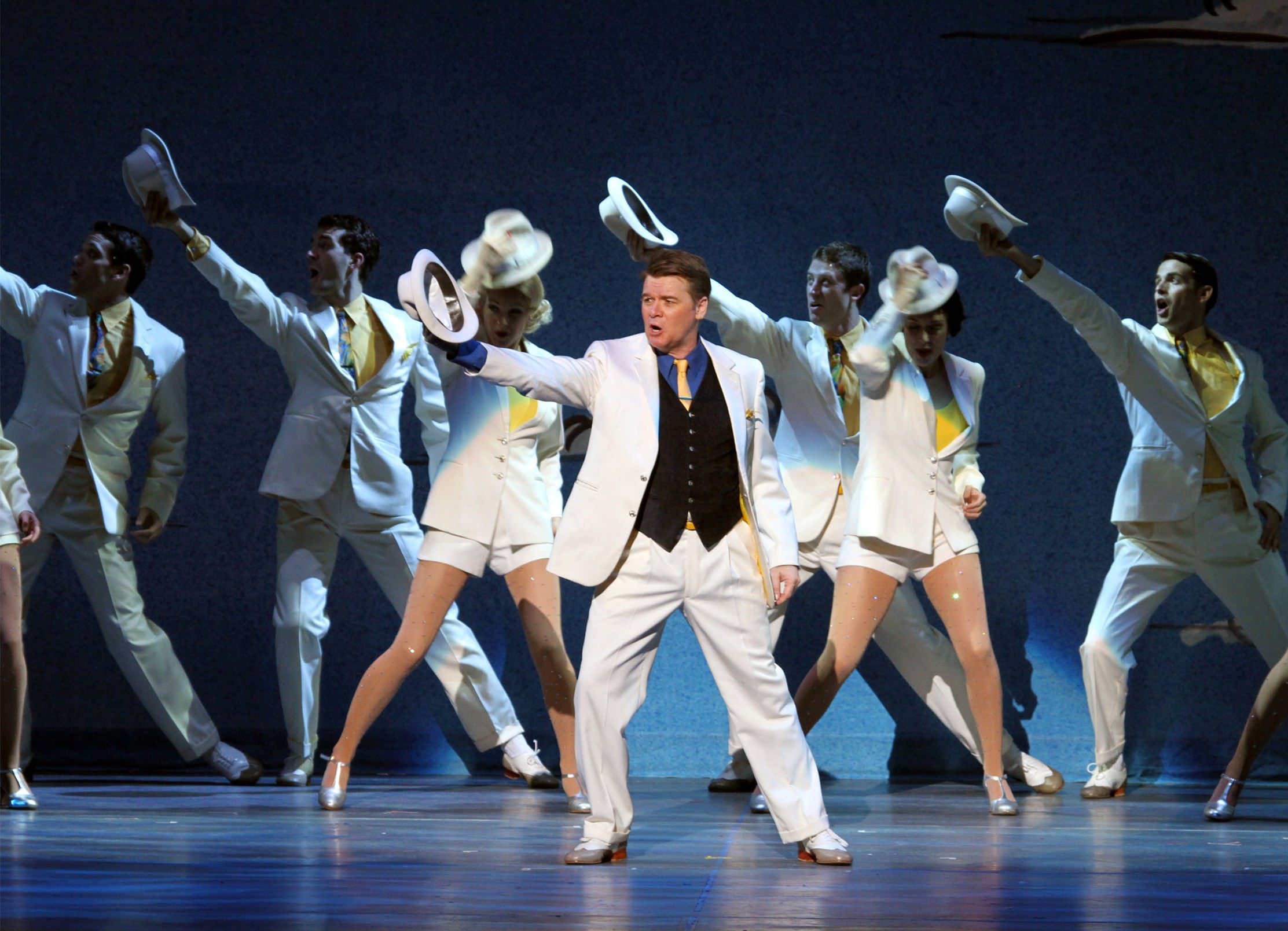The show show utilizes Berlin songs to show emotions and anger with “Falling Out of Love,” “Love, You Didn’t Do Right By Me” and “How Deep is the Ocean?” Eventually, all problems are resolved and all is copacetic. Everyone enjoys a “White Christmas.” We all have been thrilled with many familiar Irving Berlin numbers nimbly choreographed by Rand Skinner and danced marvelously by his fleet-footed dancers. While some of the singing was a tad shaky, the principles nailed their characters most pleasantly. The real star here is the Irving Berlin songbook. Seeing thrilling jazz, tap and swing tunes and strong ballads begs for more new musicals based on the great composers. Take your family to experience an old fashion slick, well-danced Broadway musical devoid of gimmick but full of heart and toe-tapping songs.