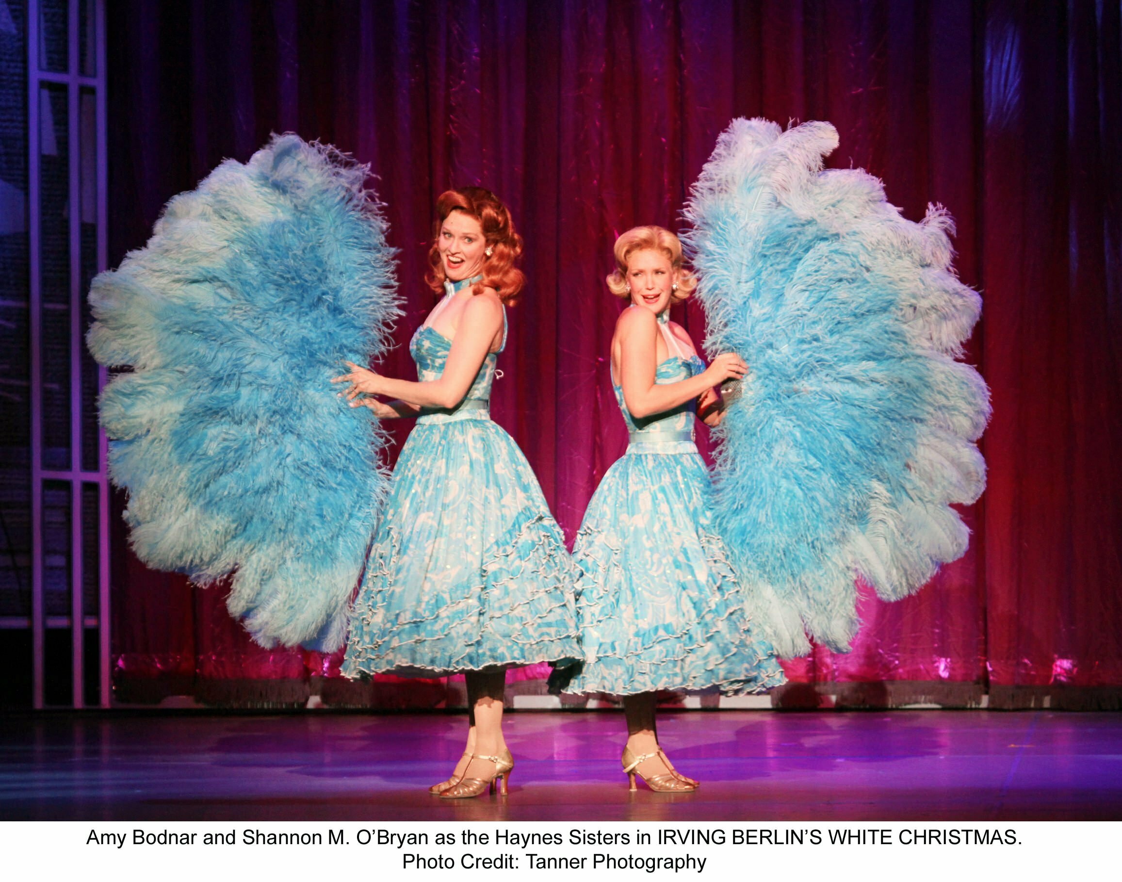 The storyline follows two song and dance men (Bing Crosby and Danny Kaye in the film) here Bob (John Scherer) and Phil (Denis Lambert) from their days in World War II to the early 50’s as they appear on the Ed Sullivan Show doing “Let Yourself G0.” This backstage musical finds Phil, ever the skirt-chaser trying to set up his partner Bob with a soul mate. They sing “Love and the Weather.” Phil takes Bob to see a sister night club act featuring Betty (Amy Bodnar0 and Judy (Shannon M. O’Brien)–the sing and dance to, what else(?) “Sisters.” Phil and Judy instantly connect while Bob and Betty quickly become adversaries.