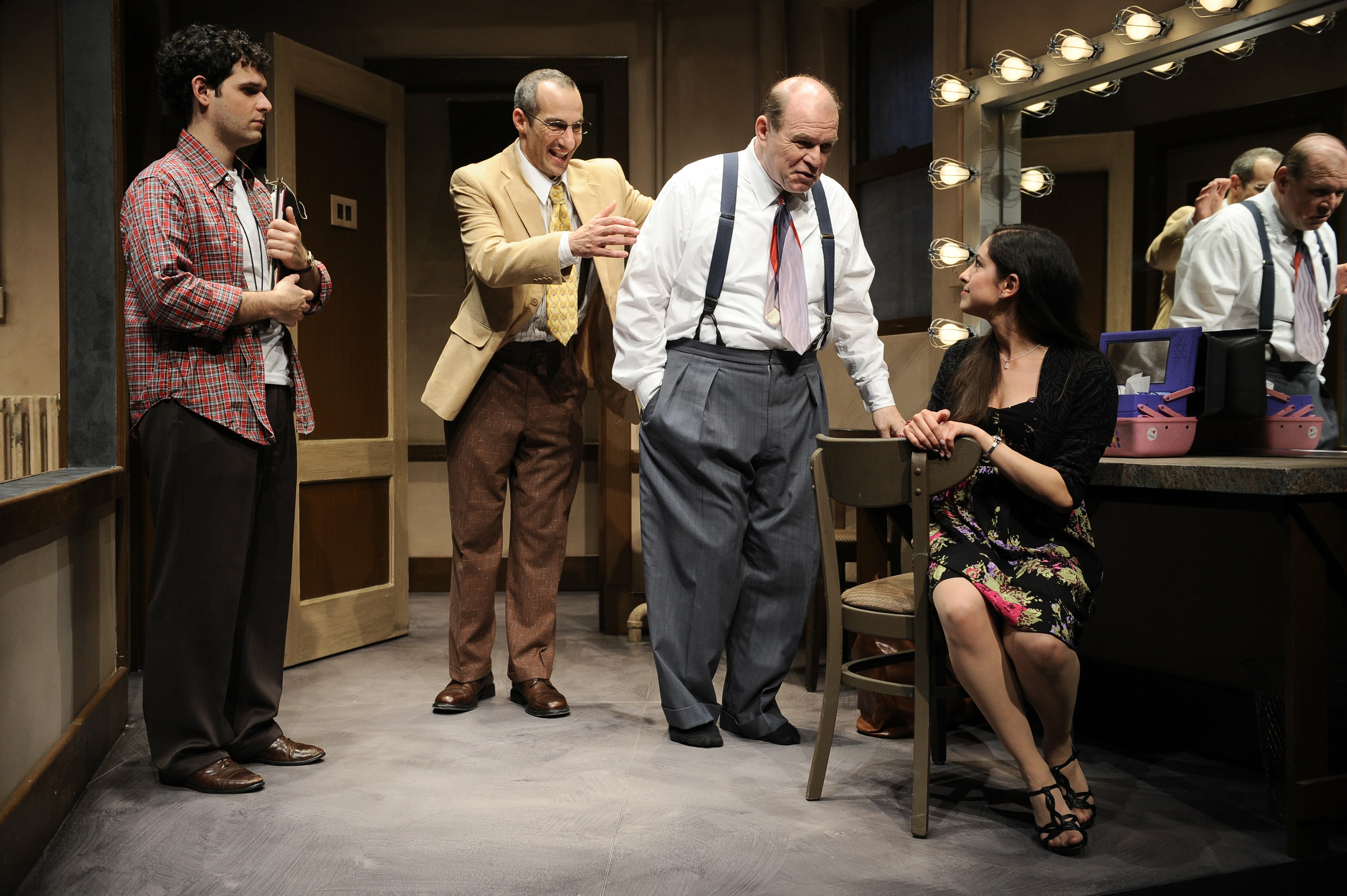 Once Jack dons a small mustache and a full head of hair, he not only ‘plays’ Jacob in the stage reading but he moves back 75 years and becomes his grandfather Jacob. To assure smooth time transfers back and forth, Sherman has Ted do a quick change to become Abe, the Yiddish Theatre’s stage manager from 1935. Sherman has Don, the contemporary stage manger, change into an Eastern European dressed young actor, Moishe who is breaking into Yidddish theatre to work with the Great Jacob Shemerinsky. Both Daniel Cantor and Andrew Keltz do yeoman work as both characters.