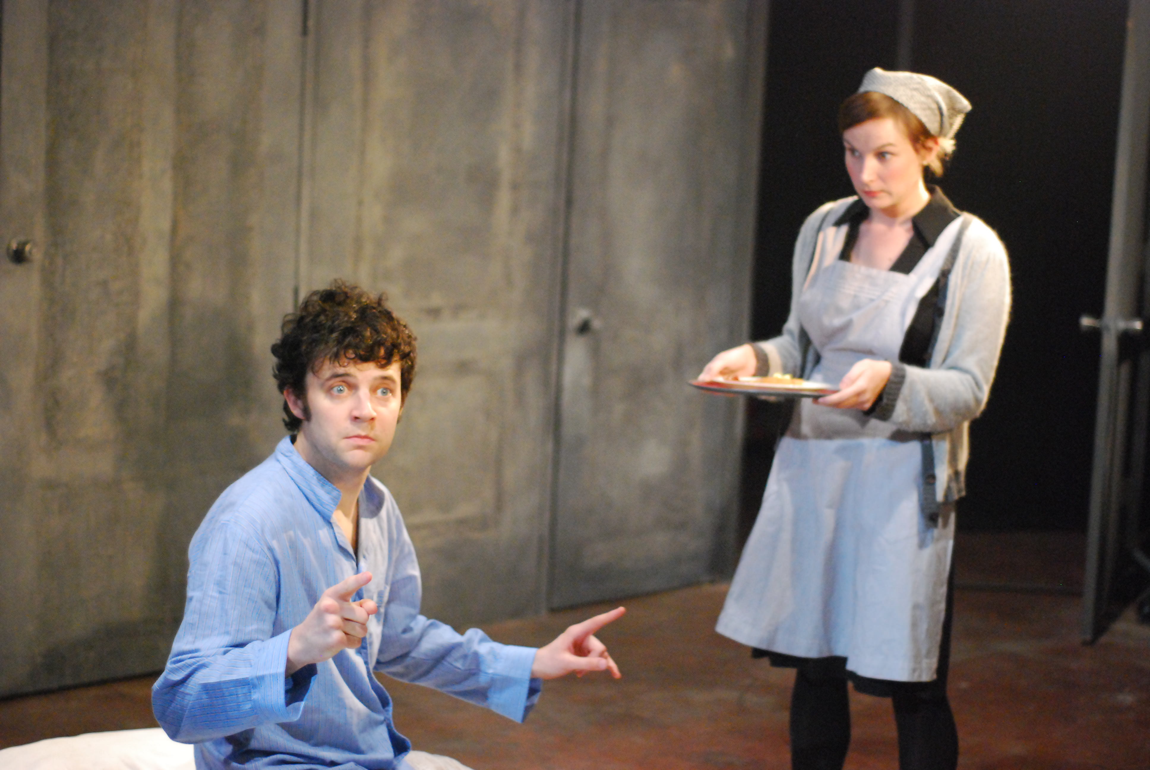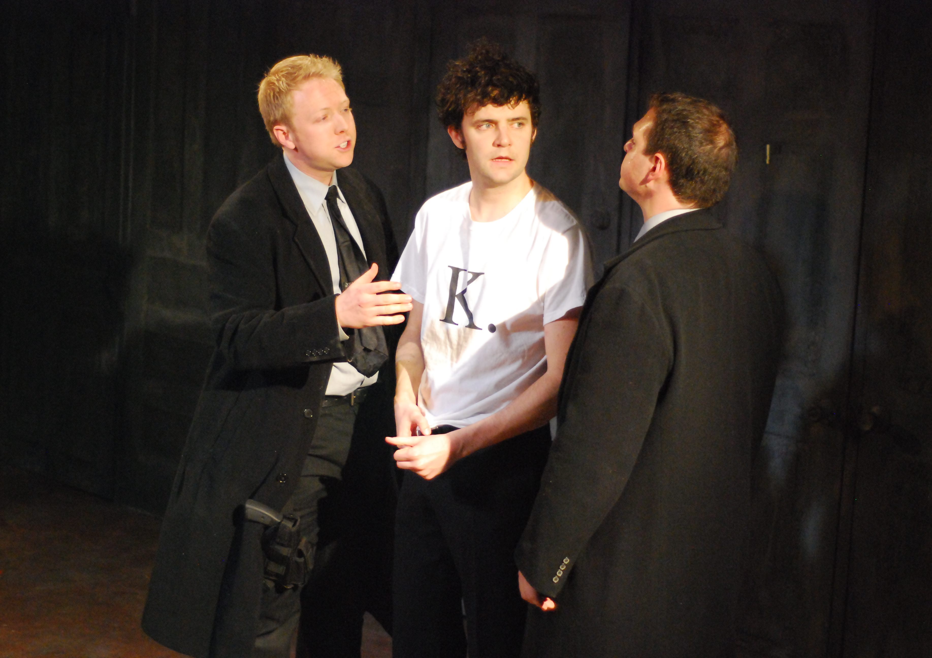 Unfortunately, act two has the story bog down into wordy, often tedious rehashing of philosophical themes that were vividly presented in act one. K. is like a dinner party where your guest is funny, interesting and engaging until he stays sitting in your parlor for hours after dinner wearing out his welcome. I’d cut about 20 minutes and make K. a swiftly paced provocative 85 minute one act. However, as it plays now, there is enough high quality acting (especially by the fearless Brennan Buhl) and enough theatrics to make K. worthy.