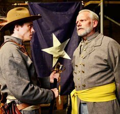 On the Union side, we meet Colonel Chamberlain (Michael McKeogh) from Maine, the school teacher turned soldier who makes a gallant stand at the end of the Union line thus saving the battle for the Union. With his brother Tom (Zach Livingston) and his aid Kilrain (Don Bender), Chamberlain is the voice of the idealistic soldier bent on doing his duty with bravery and dedication.