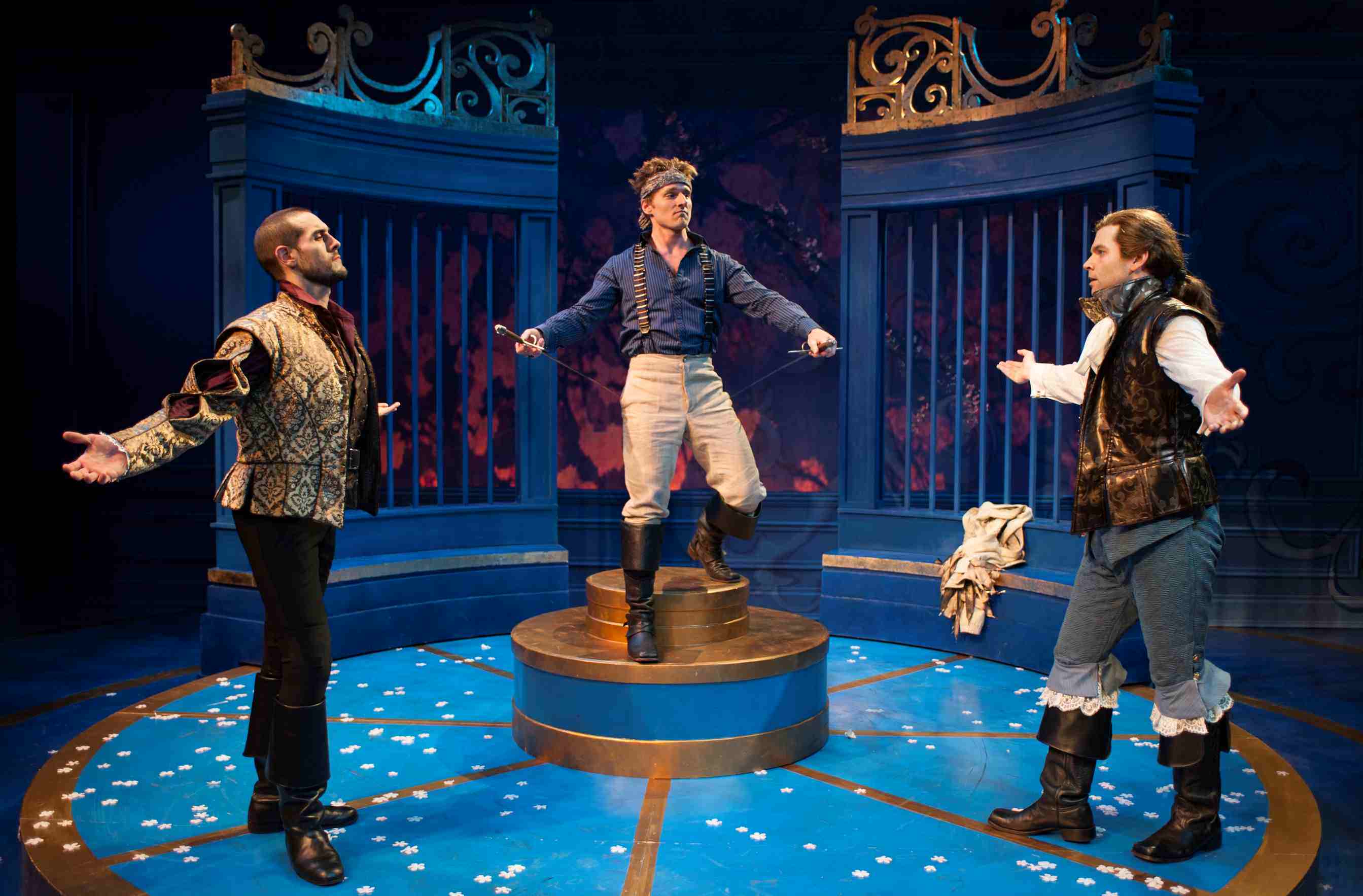 And Brown’s production is thankfully smart enough not to get bogged down in clunky exposition, rather preferring to allow the play’s naturally frenetic energies to practically burn across the stage. At times deliciously lowbrow (a favorite groaner features the rhyming of ‘diarrhea’ with ‘idea’), whimsically lyrical (“Let me submit my mind unto the moon”), and physically audacious (including the funniest sword fight sans swords you will ever see), Brown’s production stands first and foremost as a big-hearted love letter to the craft of theatrical illusion. Sure, the first act sometimes lags when having to come down to anything so grounded as an actual narrative. And yes, it’s extreme self-awareness lends itself occasionally to a heavy-handed didacticism. And perhaps we are less convinced by its efforts to be suddenly ‘sincere’ and emotionally ‘authentic.’ But its chief accomplishment is not in plumbing the depths of the human experience, but rather in cultivating the glittering allure of the surface.