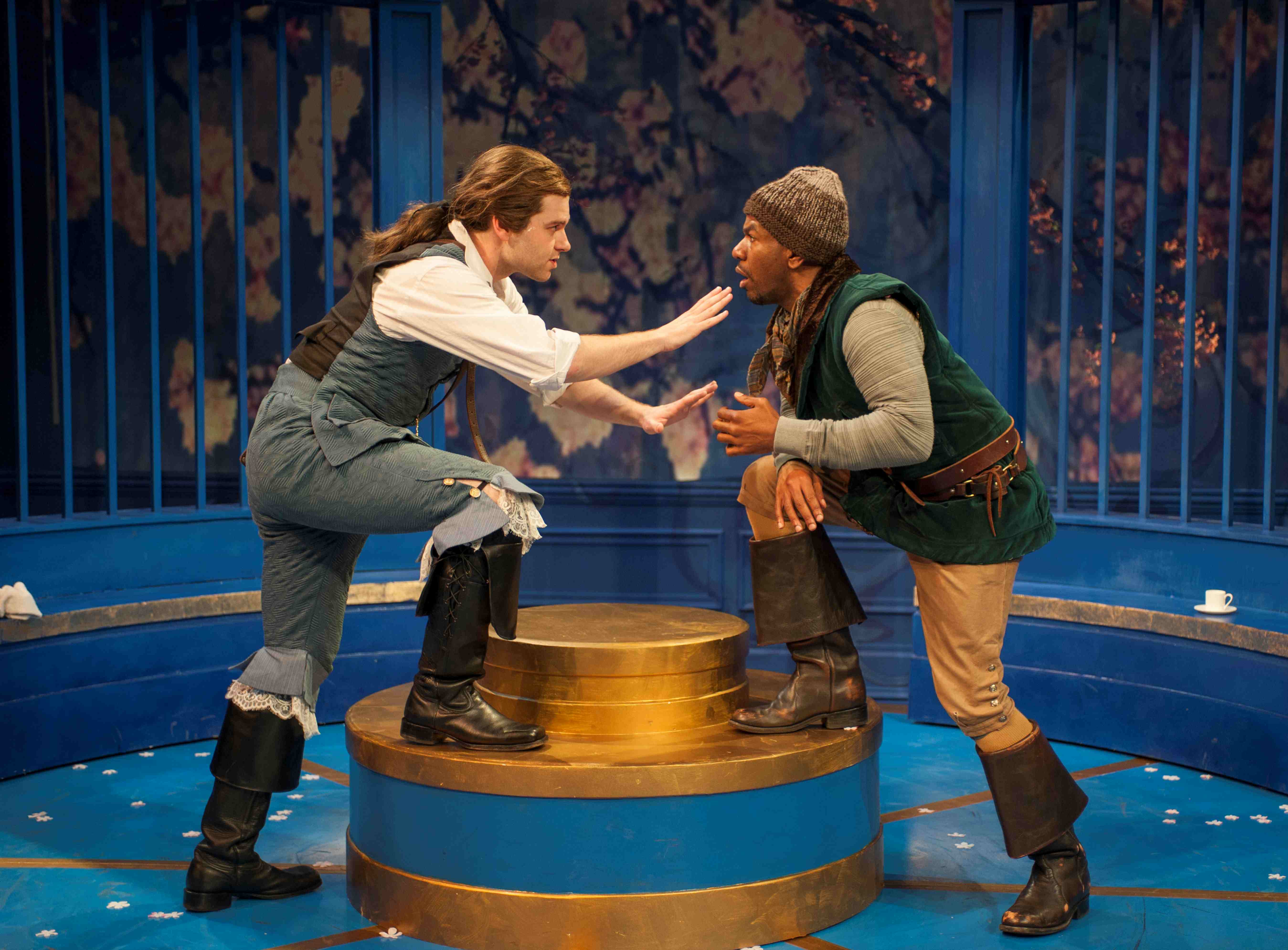 Dorante and Cliton - horiz (_DSC8506)Without a doubt, the Writers’ Theatre’s production of David Ives’s ‘translaptation’ The Liar—freely adapted from the 1643 French comedy Le Menteur by Pierre Corneilleis the funniest ticket in town. And those eager to kick off their summer right could do significantly worse than with this dazzling fireworks display of language, ingenuity and comedic bravado. William Brown (who directed last season’s A Little Night Music at Writers’) directs an exceptionally adept young cast as they bring the linguistic intricacies of Ives’s verse comedy to life, tickling the ear even as they titillate the mind.