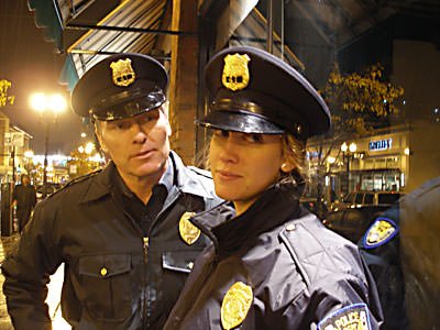 When the macho charismatic NYPD patrolman, Bill (Eric Hoffman) and his female rookie cop Dawn (nice work from Maura Kidwell) stop by the lobby so Bill can visit his friend in 22-J, Jeff instantly falls for Dawn. Before entering the lobby, we hear a discussion (on the street) where Dawn and Bill are discussing Dawn’s physical arrest of a drunk earlier that night. Hints of Dawn hero-worshiping Bill are obvious.